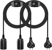 1.8M Hanging Lamp Cord AU Plug in Pendant Light Cord, E27 E26 Base Socket Dimmer Switch DIY Pendant Lamp Kit for Cafe, Bar, Restaurant, Office, Farmhouse Home, Kitchen, Bedroom(Bulb Not Included) (Black 2 Pack) - Black 2 Pack