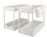 2 Pack 2 Tire Storage Shelf Organiser Spice Rack Sliding Drawer Basket under Sink Kitchen Bathroom Home White - White