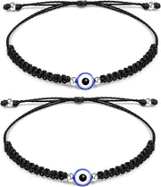 2 Pcs Evil Eye Bracelets for Women, Protection Bracelet for Men Kids, Negative Energy Evil Eye Jewelry Nazar Bracelet, Red String Bracelet for Protection - 03-Black