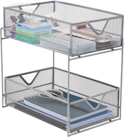 2 Tier Metal Mesh Storage Baskets Organizer, Home, Office, Kitchen, Bathroom, Silver - Silver