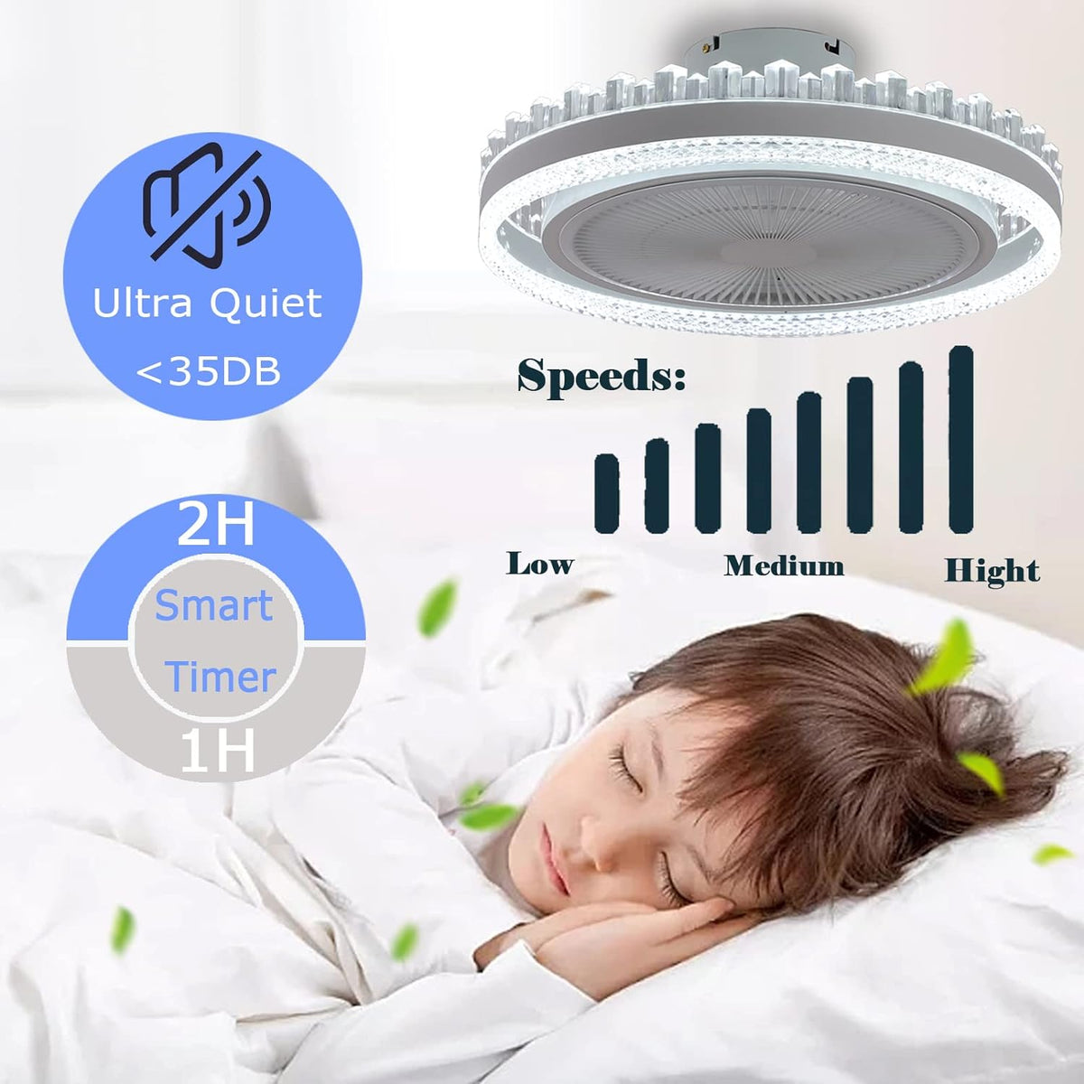 4. Remote control: Use the remote control to control lights and fans separately. Light on/off switch.