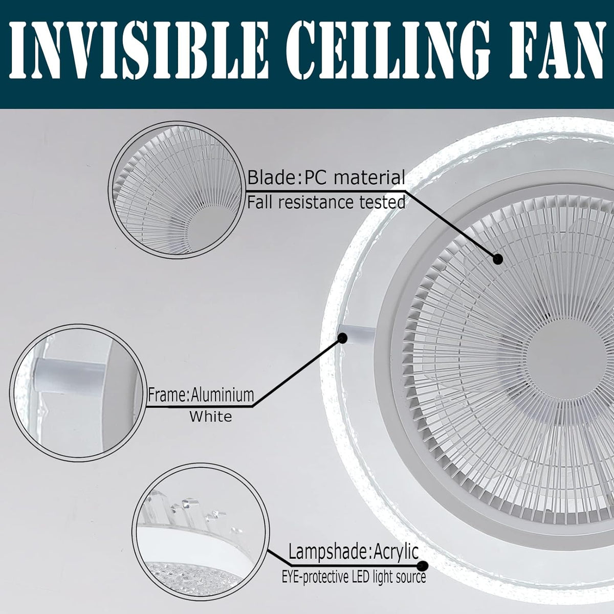 Ceiling Fan with Light Modern Bladeless Ceiling Fan with Remote Control Dimmable Lighting Indoor Low Profile Ceiling Fan Flush Mount,72W Modern Ceiling Fan Ceiling Fan with Lights Enclosed