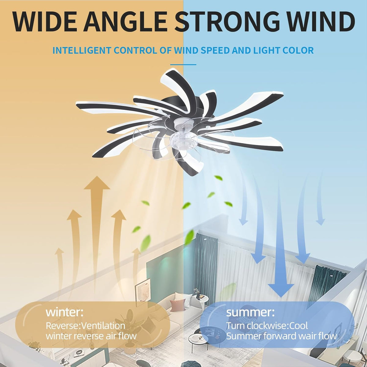 【6 Gears Fan Speed & Dimmable】: With the remote control, the fan can be adjusted at 6 different speeds to suit your needs. You can easily set the 3 light colors(warm white/neutral light/cold white), and light intensity(stepless dimming). It can help improve air circulation in the room and help you cool down in summer and warm up in winter.