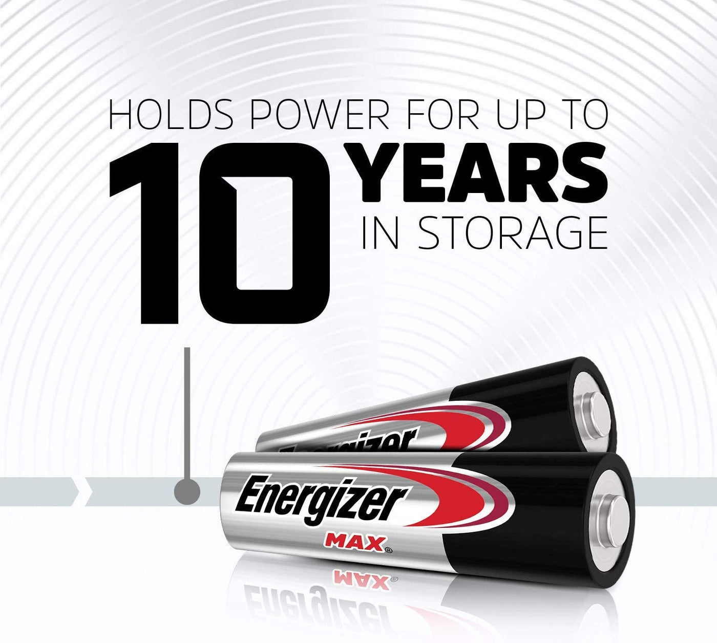 Long-lasting power and innovation is what the Energizer Max family is all about. Count on Energizer Max batteries to deliver long-lasting power to your everyday devices. They also hold their power for up to 10 years while in storage so you have power when you need it most. Plus Energizer Max AA batteries are designed to protect your devices from leakage of fully used batteries for up to 2 years. So when it comes to toys torches wireless mice and other valuable devices you can feel confident knowing you have the long-lasting energy and protection you expect from Energizer. Of fully used batteries in devices up to 2 years