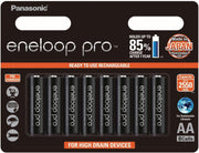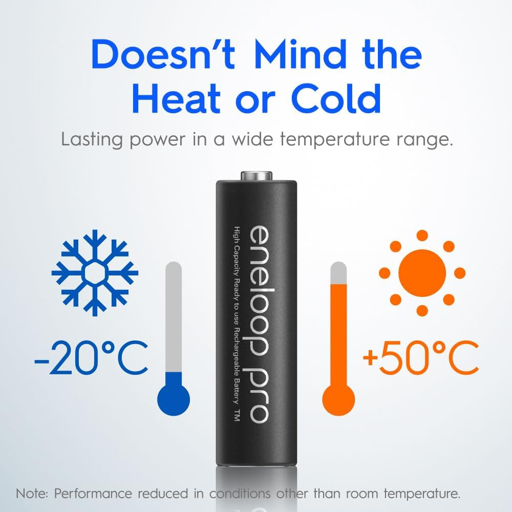 Take a fresh look at rechargeable high capacity eneloop, the eco choice to conventional dry cell batteries. It offers similar high performance and long life, but can be reused over and over again. And thanks to extremely low self-discharge capabilities, pre-charged eneloop can be used immediately or stored for up to one year while retaining 85 percent capacity. The number of dry-cell batteries sold in one year worldwide is about 40 billion. When these batteries are dead they find their way to landfill. By using rechargeable batteries, we can change our lifestyle from one that repeatedly discards batteries to one that repeatedly reuses them. Eneloop batteries are incredibly economical. Although eneloop batteries cost a little more than conventional dry-cells, their long term financial benefits far outweigh the initial outlay. Given that eneloop batteries can be recharged 100's of times , you can be sure they will save you an incredible amount of money over time. Eneloop is ready for action straight off the shelf. Our eneloop batteries are pre-charged using solar power, so they are ready to use as soon as you take them out of the packet. What's more, even after 1 year's storage, eneloop batteries still hold their power, so you can be certain that they will always be ready for action. Eneloop batteries are perfect for high drain devices. Use eneloop batteries to get more out of high drain devices such as digital and flash cameras, toys, game controllers, wireless keyboards, flashlights and more. Due to their power retention capabilities, eneloop batteries are also perfect for low drain devices such as remote controls and smoke alarms. Recharge each battery 100's of times. Your initial investment is quickly recovered. Solar charged. First charged at the factory using solar power. Pre-charged and ready to use. Retains 85 percent of its charge after 1 year of storage. Panasonic's estimate - A guideline for battery life based on IEC61951.