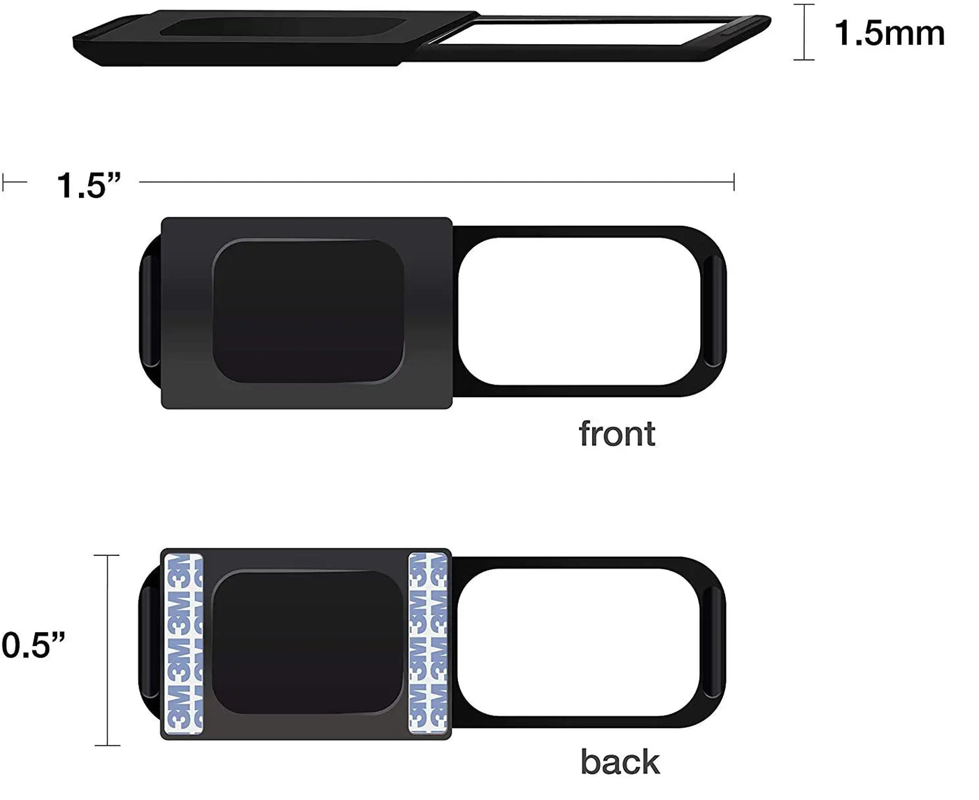 Webcam Cover 6 Pack - Thin Sliding Laptop Cam Blocker, Black, 1.5β x 0.5β and 1.5mm Thick