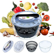Salad Spinner Design - Easy, one-handed operation, Also be designed for both right-handed and left-handed users. The Strainer basket allows for washing vegetables, it is also made to dry your salad with little effort and maximum efficiency.