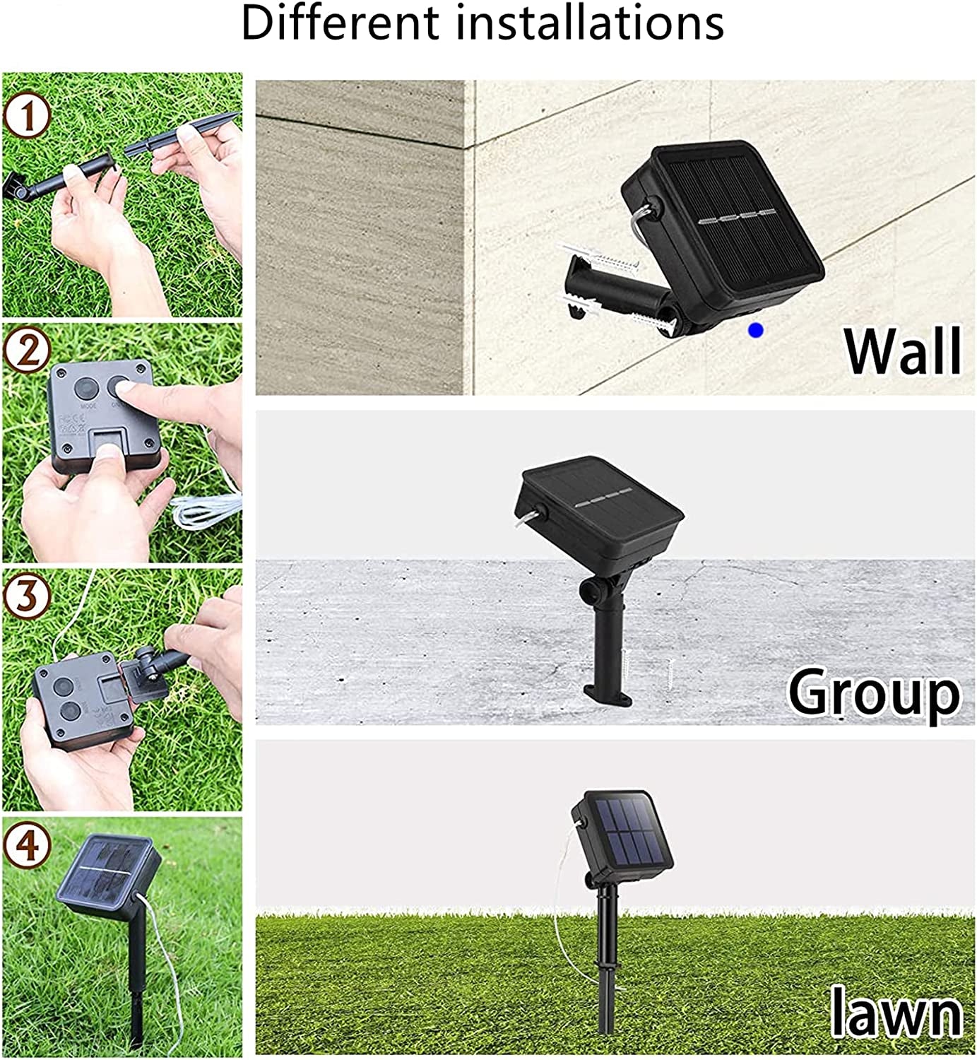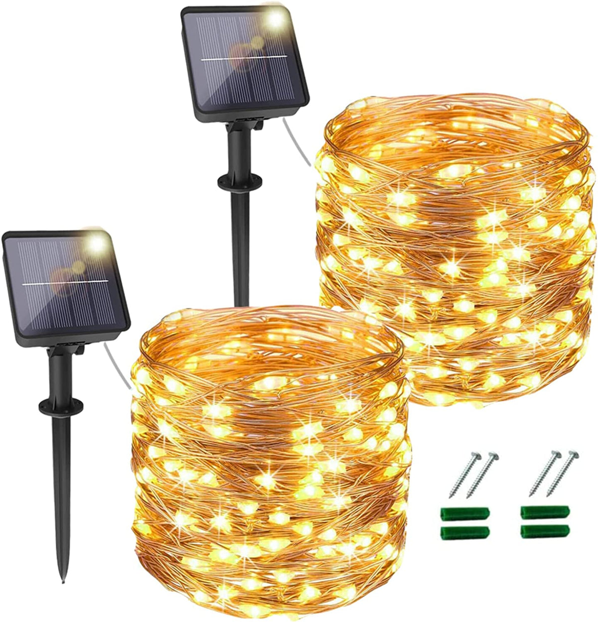 8 IMPRESSIVE LIGHTING MODES8 different lighting modes including combination, fireflies flashing, waves, fading, chasing/flashing, fading slowly, twinkle/flashing | Flexible&FreeStanding InstallationThe solar fairy lights come with thin and flexible shape,easy operation.You can fix the panel box on the wall indoor or stake it into the grass outdoor,round stake to fix the lights and warp it around fence,trees and door as you wish | Perfect for multi-application scenariosVery ideal decorations for your home,lawn,Backyard,Wedding,Gate,Wall,Gardens,flower fence,Indoor&Outdoor party,Christmas | High Efficient Solar Panel&Long battery LifeHigh efficient solar panel,the outdoor solar light energy will converted to electricity by exposing to sunlight |
