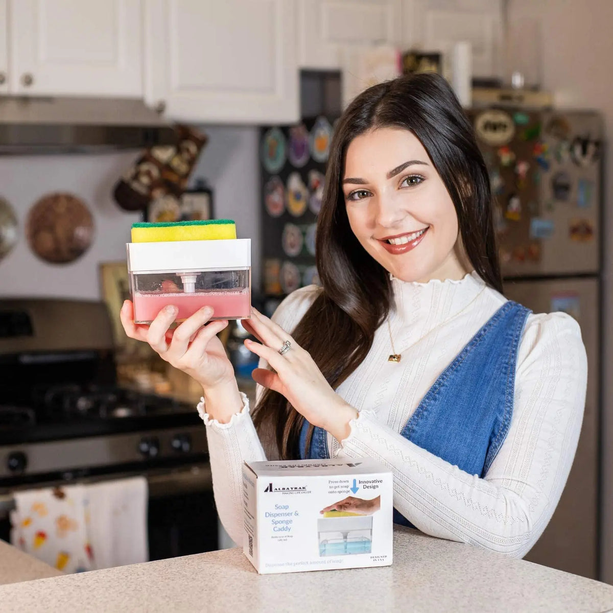 Albayrak 2-in-1 Soap Dispenser for Kitchen, Sponge Holder, Instant Refill, Durable & Rust proof 13 oz