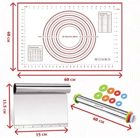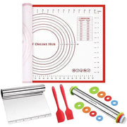 Pack of 5 Baking Utensils. Silicone Baking Mat (Size 40x60cm), Dough Scraper, Rolling Pin, Silicone Spatula and Brush. Baking gift for baking lovers