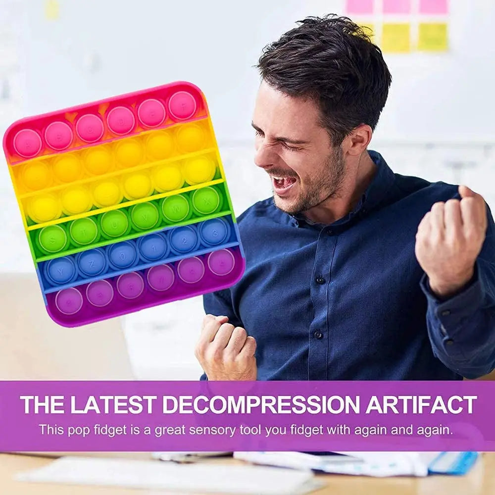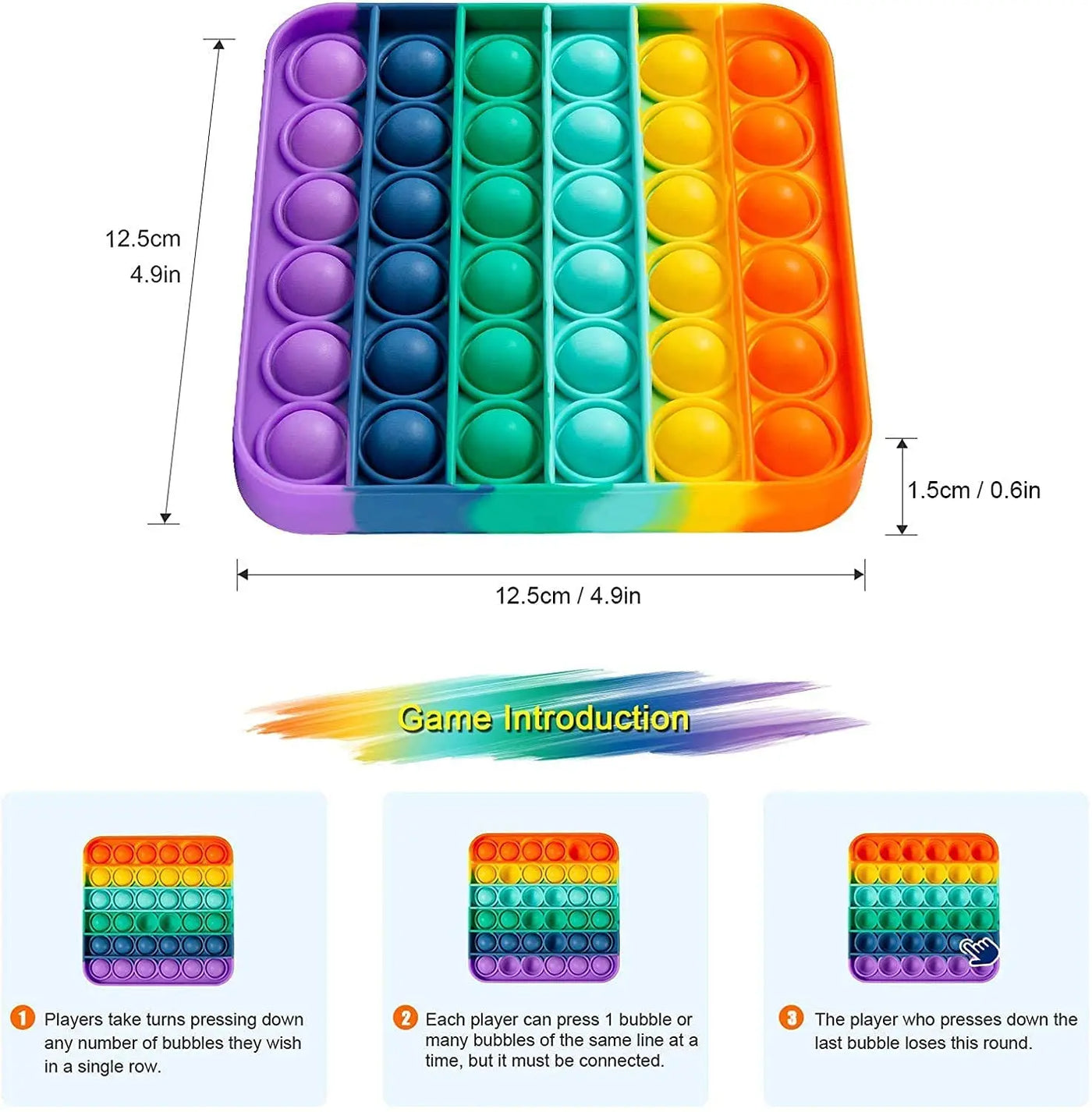 Stress & calmness therapy - fidget push bubble pop toy is fantastic for kids with ADD/ADHD, OCD, autism, or people with high anxiety. Squeeze, stretch or pop this toy to relieve anxiety, stress and fidget needs and at the same time develop your childrens' logical thinking and visual training