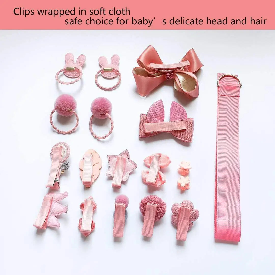 T Tersely 18PCS Baby Girl's Hair Clips, Cute Hair Bows, Elastic Hair Ties, Ponytail Holder Hairpins Set For Baby Girls, Teens, Assorted styles, (Pink)