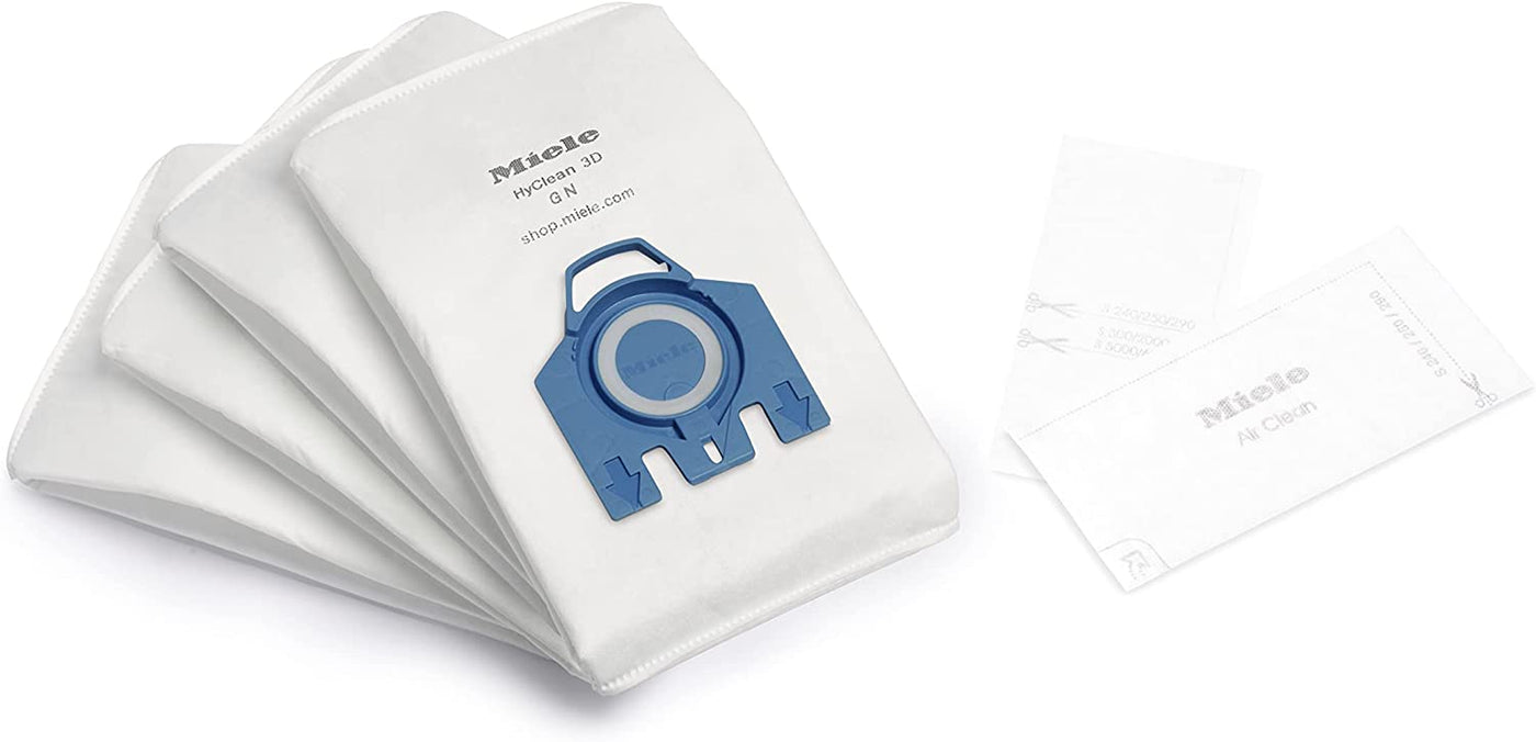 Miele HyClean 3D Efficiency GN Dustbags ensure that dust picked up stays inside the vacuum cleaner. Filters more than 99.9 percent of all dust particles. Clean bag replacement thanks to automatic bag closure. Longer service life with 3D dustbag technology. Contents: 4 dustbags, 1 motor protection and 1 exhaust filter.
