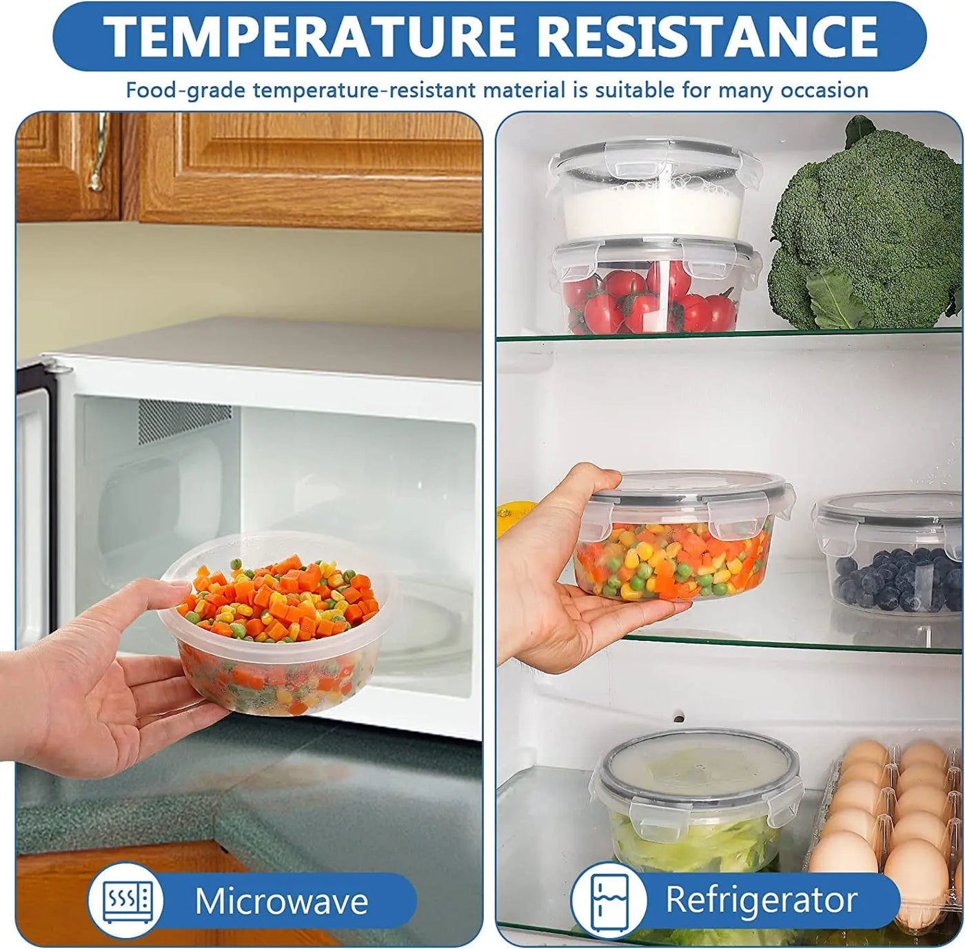 Lovely Meal Pre ContainersTired of wasting money on shop bought convenience meals that are unhealthy for you?FESHORY provide ten pack of premium plastic food containers with lids will help you to meal prep and achieve your goals. | Multiple Sizes as Lunch BoxThe significant advantage of choosing FESHORY containers is their durability. We use high-quality materials(food grade), please feel free as your lunch box to takeaway. More durable than disposable box, and lighter than glass containers. Saving your money with us from this moment. | Fridge organiserOur leak-proof design of the containers provides a spill-free food storage experience to our users while making it an ideal choice to carry any kind of diets, leftovers, salads, pastas and snacks. 10 pack of plastic containers is easily stackable for organization as your fridge organiser. |