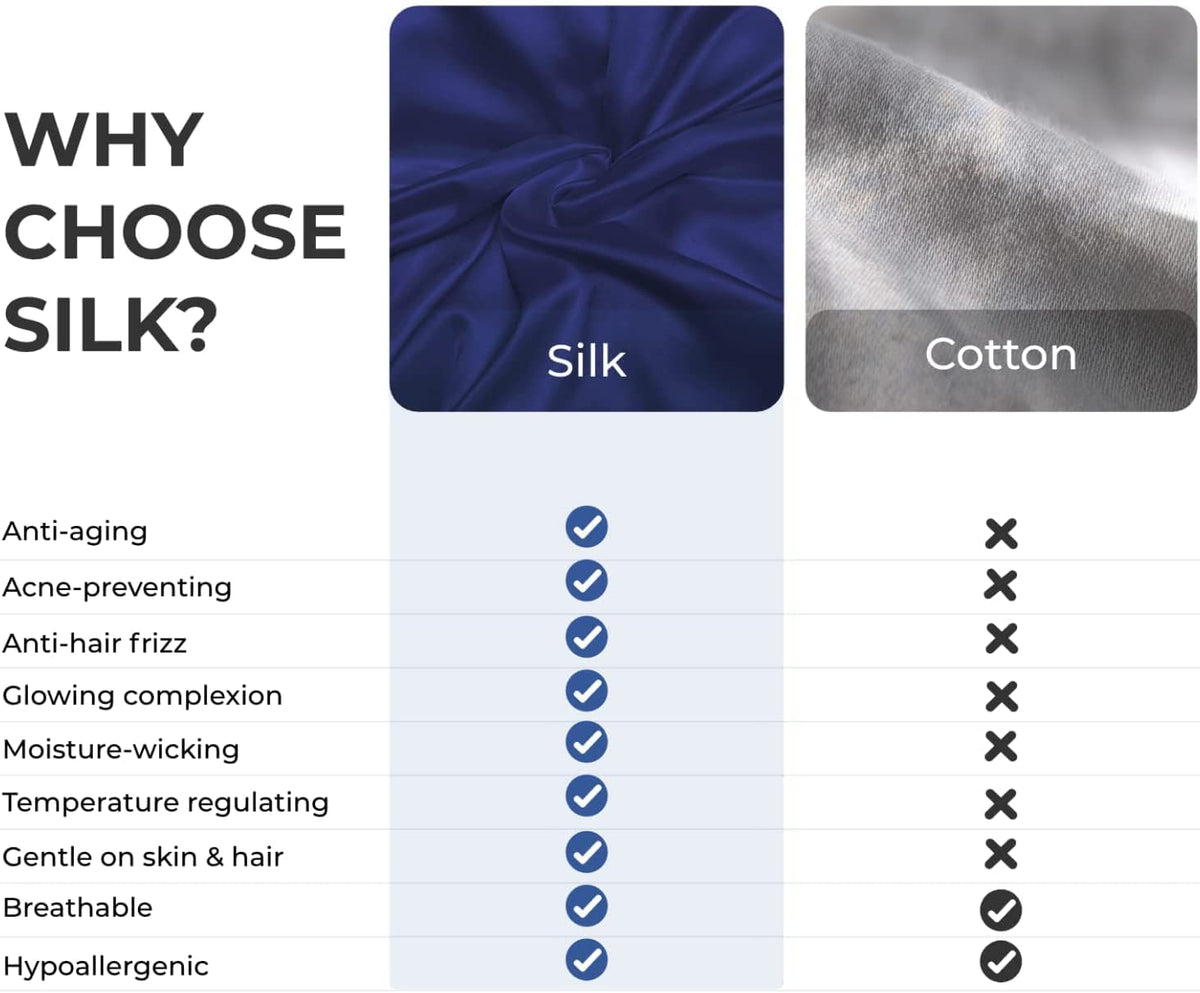 【Hypoallergenic & Prevents Acne】Silk is smooth, soft, and breathable, and less absorbent than traditional materials such as cotton & linen. This means your face creams and oils from your face won't stick on your pillowcase. It is also naturally anti-bacterial and repels dust mites. Perfect for those with allergies, sensitive and acne-prone skin.