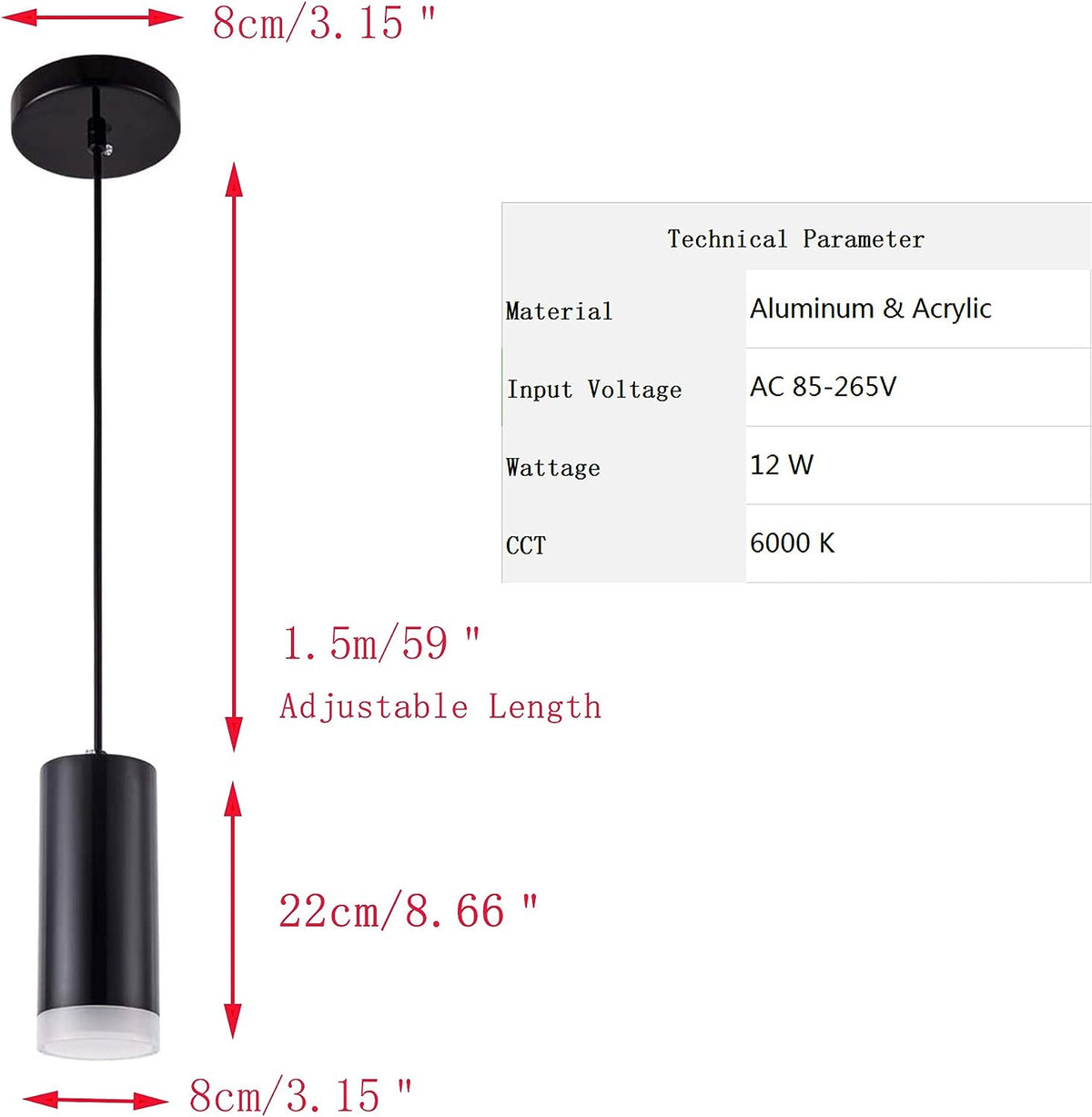 【Product Description】 Packing quantity:1 pc, Size: Diameter 8 cm * Length 22 cm ,Base diameter:8 cm, Wire Length: 150cm (adjustable); Lighting source: LED COB (included) ; Wattage: 12W ; Input Voltage: AC 85-265V; Color Temperature : Cold White, 6000K; Material: Aluminum & Acrylic;Long life span reaches 300,000hrs.