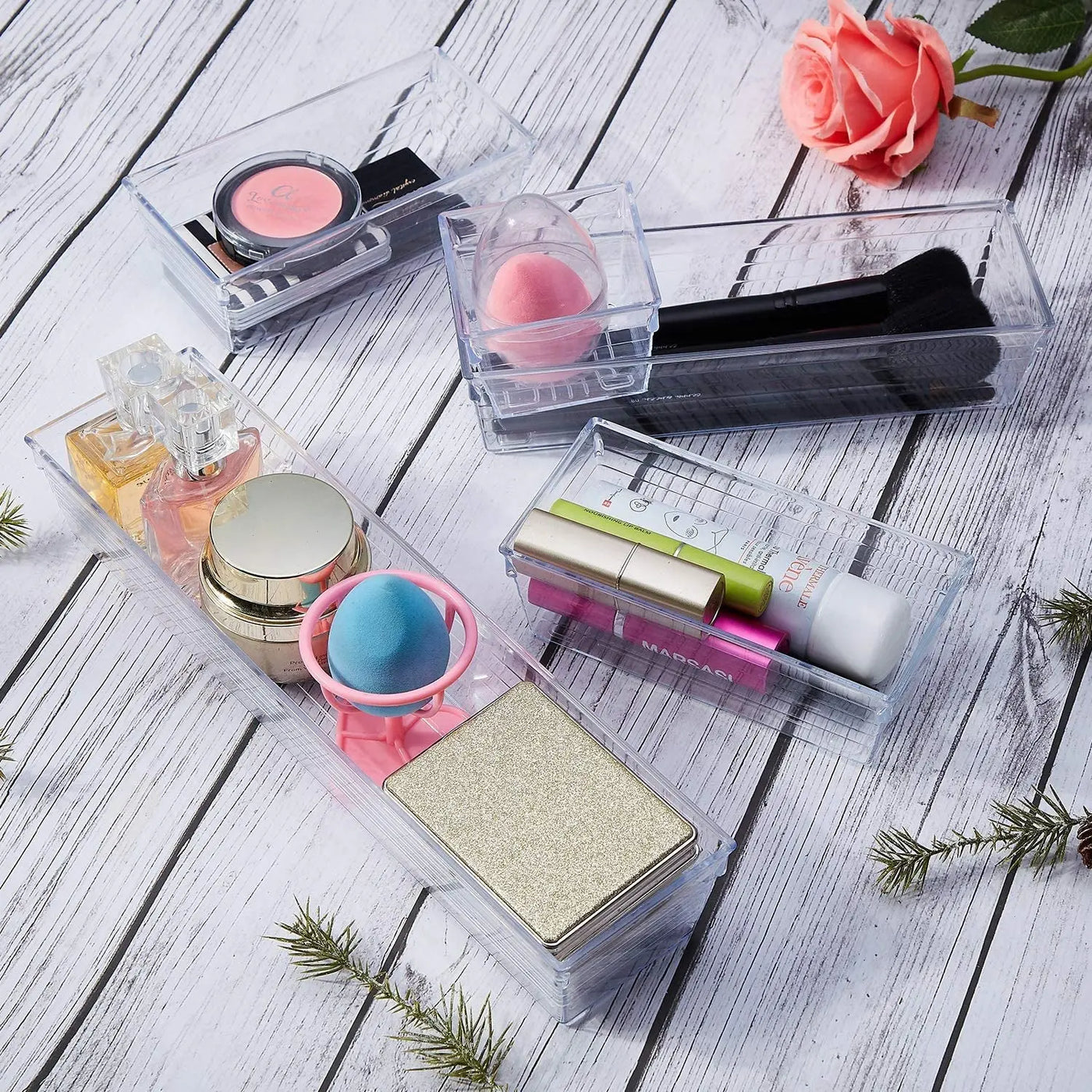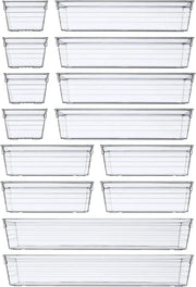 14 PCS Clear Plastic Drawer Organizer Tray for Makeup, Kitchen Utensils, Jewelries and Gadgets