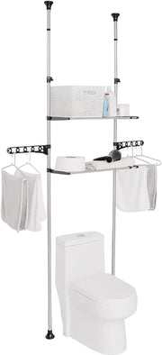 2-Layer Expandable Laundry Shelf over Washing Machine Storage Rack Tension Pole Space Saver Bathroom Organizer with Towels Clothes Hanger Hook