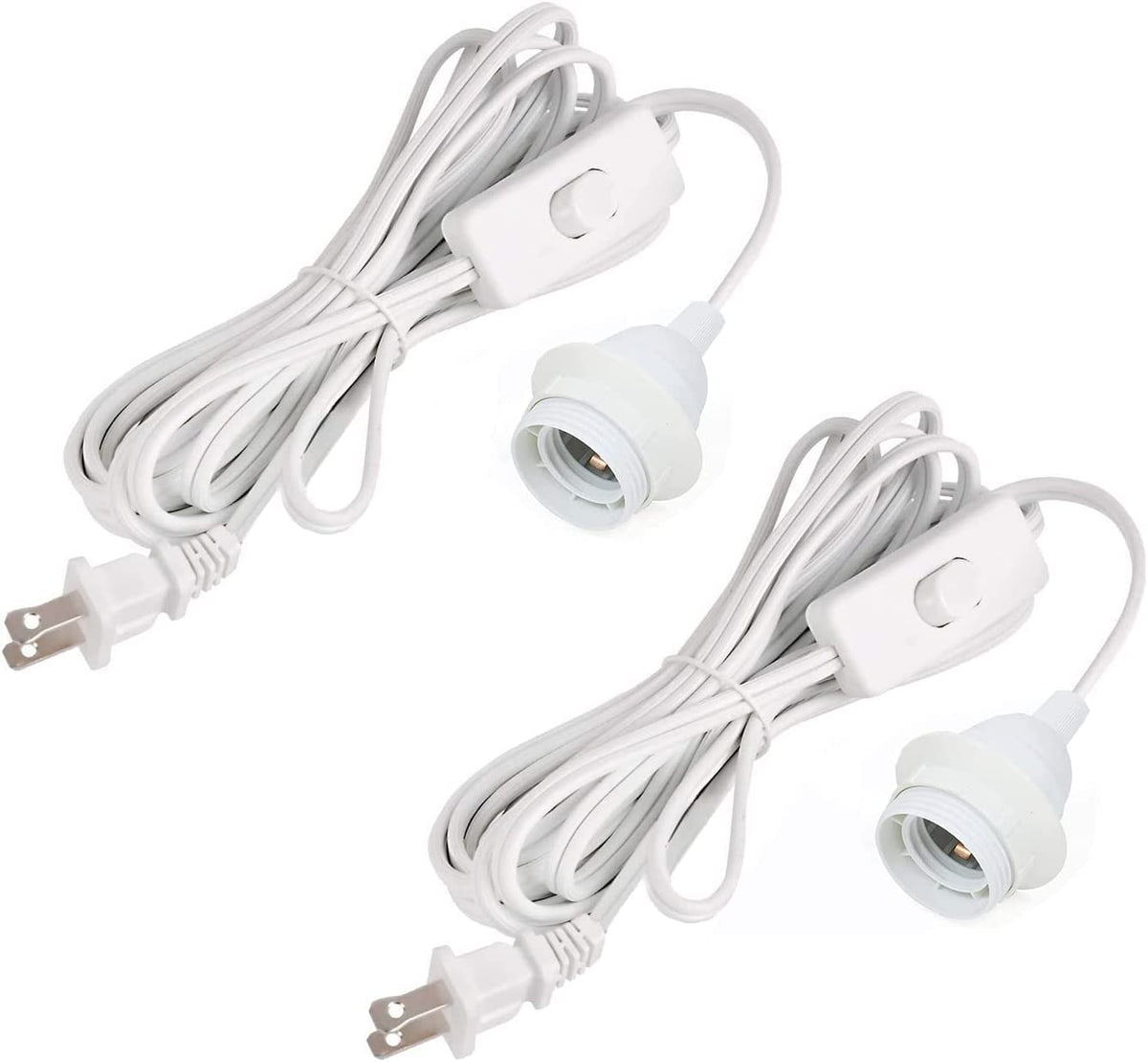 2 Pack Plug in Pendant Light Cord Kit, DIY Extension Hanging Lighting with E26 Socket & Switch - 15 FT - 15Ft