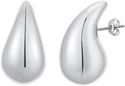 2 Pair Teardrop Earrings Dupes for Women Gold/Silver Chunky Hoop Earring Dangle Water Drop Hypoallergenic Earring Set for Women Girls - Silver