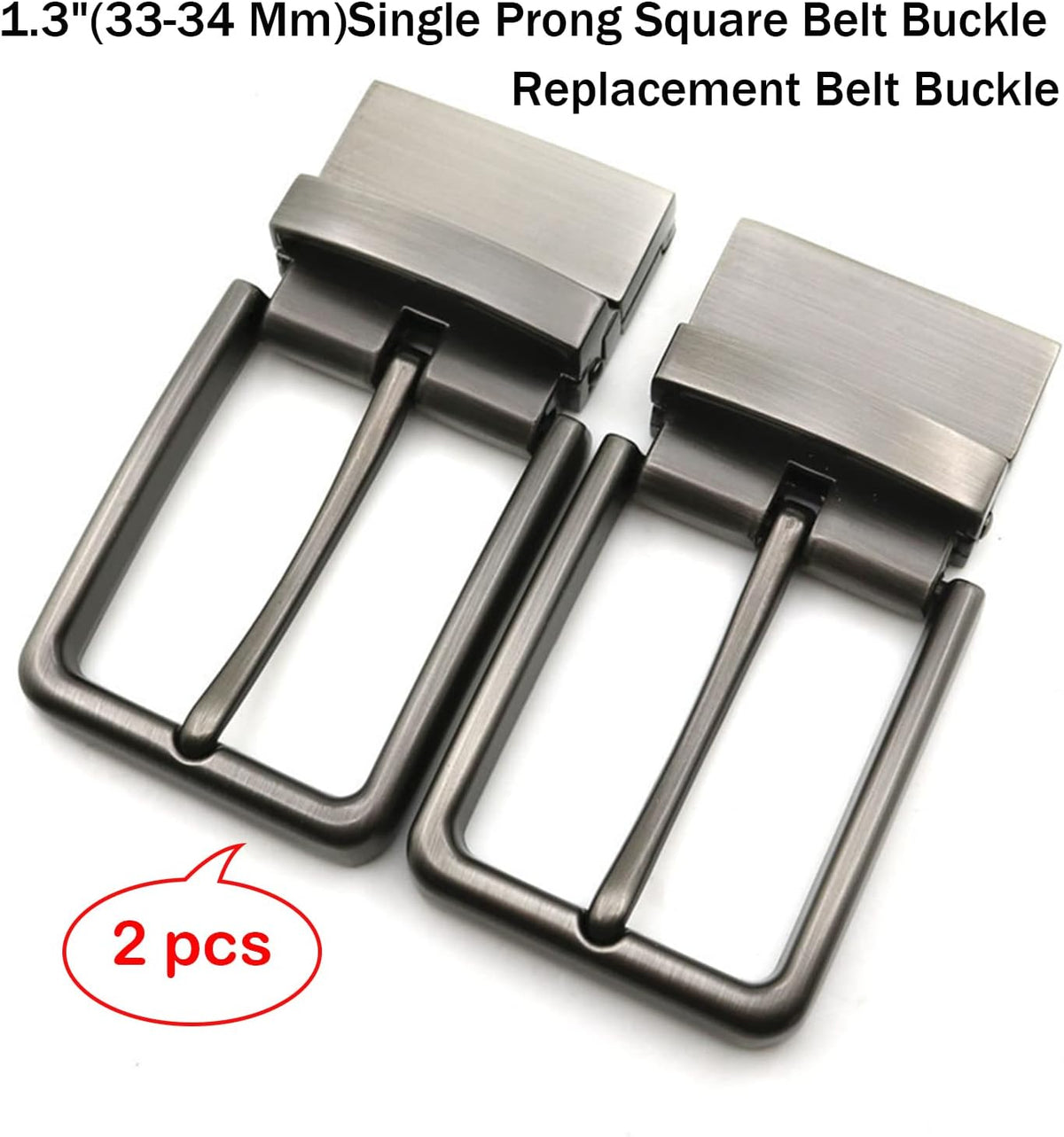 2 Pcs Generic 1.3"(33-34 Mm) Single Prong Square Belt Buckle Replacement Belt Buckle, Men Metal Belt Buckle Replacement Rectangular Pin Buckle, Single Prong Rectangular Pin Belt Buckle