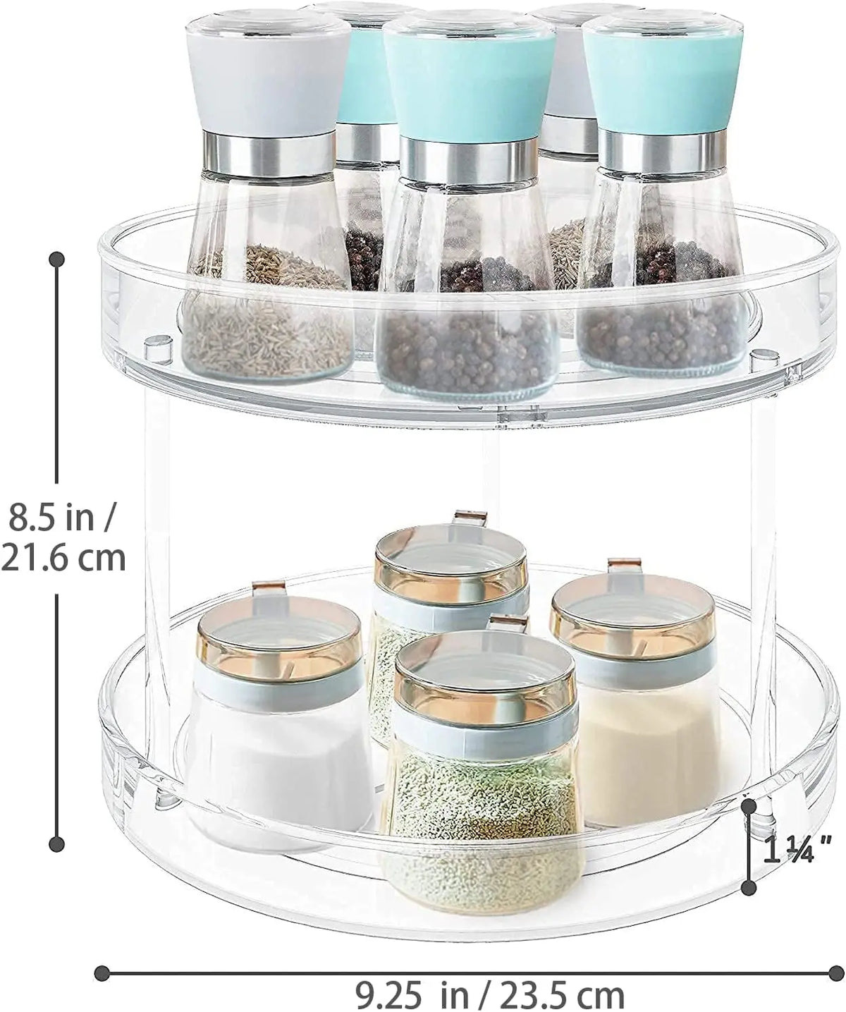 2 Tier Lazy Susan Organiser, 23.5Cm/9.25" 2 Tier Lazy Susan Turntable Cabinet Organizer Spice Storage Rack, Storage Rack for Kitchen, Makeup Holder Cosmetic Storage Rack Clear (Small) - Small