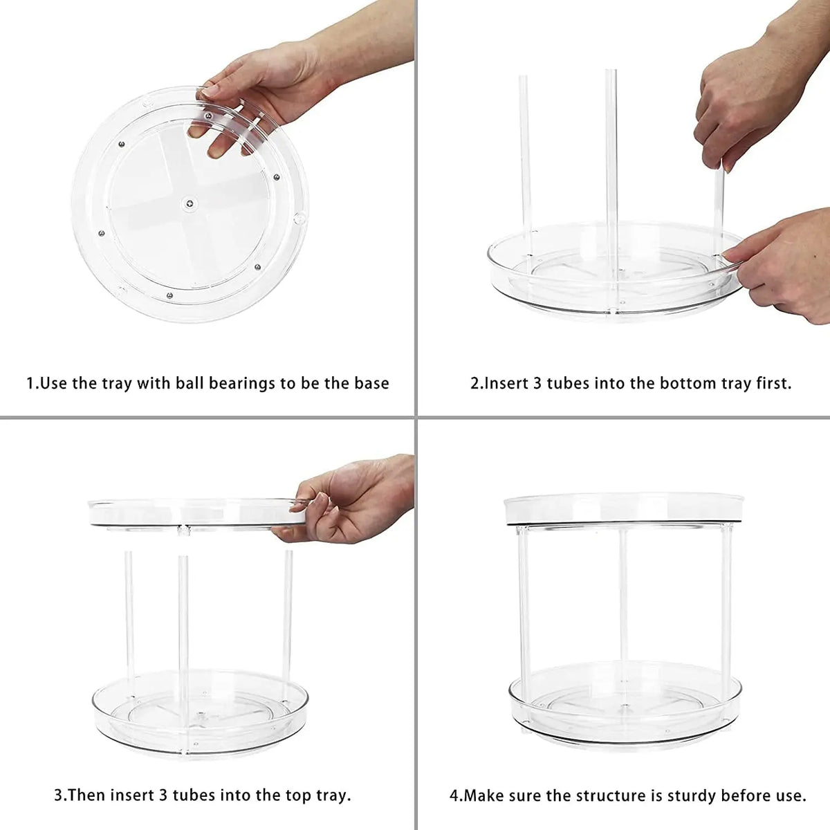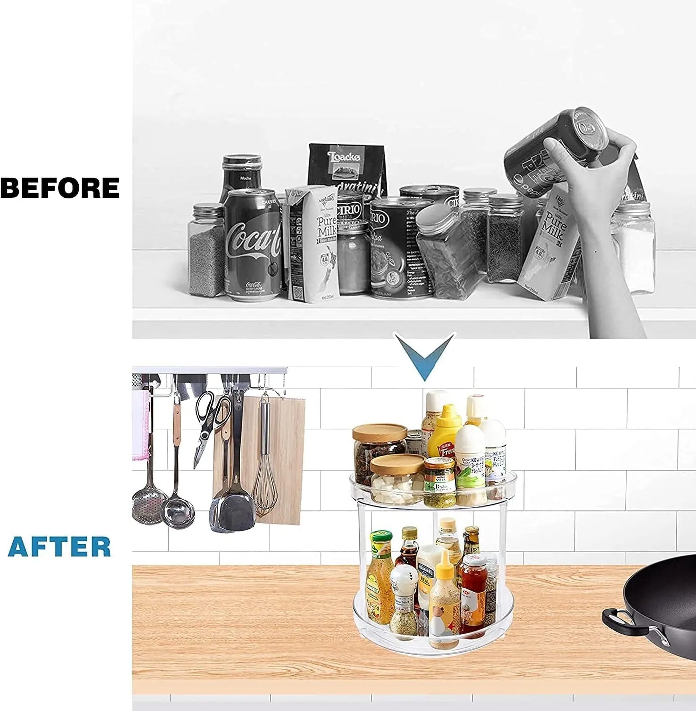 2 Tier Lazy Susan Turntable Cabinet Organizer Spice Storage Rack, Rotating Kitchen Cupboard Organiser, Storage Rack for Kitchen, Fridge and Bathroom, Makeup Holder Cosmetic Storage Rack Clear