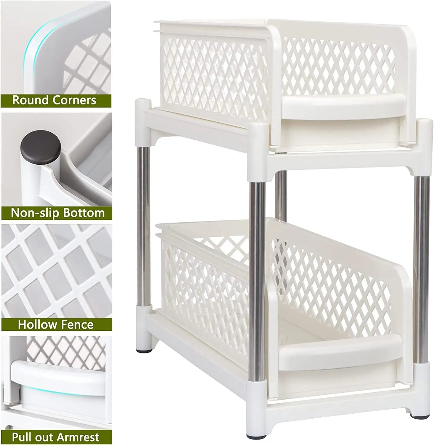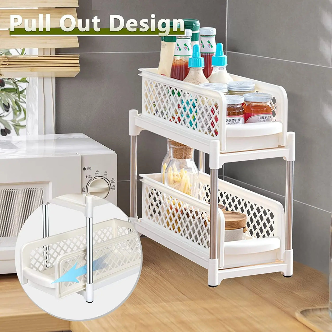 2 Tier Spice Rack Organizer with Sliding Drawer Organizer, under Sink Organizers and Storage Rack Pull Out Cabinet Basket Organizer for Bathroom Kitchen Bedroom, Beige