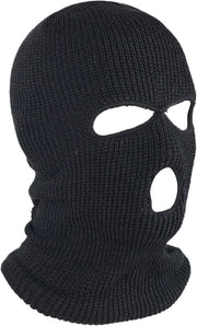 3 Holes Black Balaclava Style Windproof Mask Neck Warmer Ski Hat Fishing 3 Hole Beanie Face Mask Ski-Warm Knit-Men and Women Black