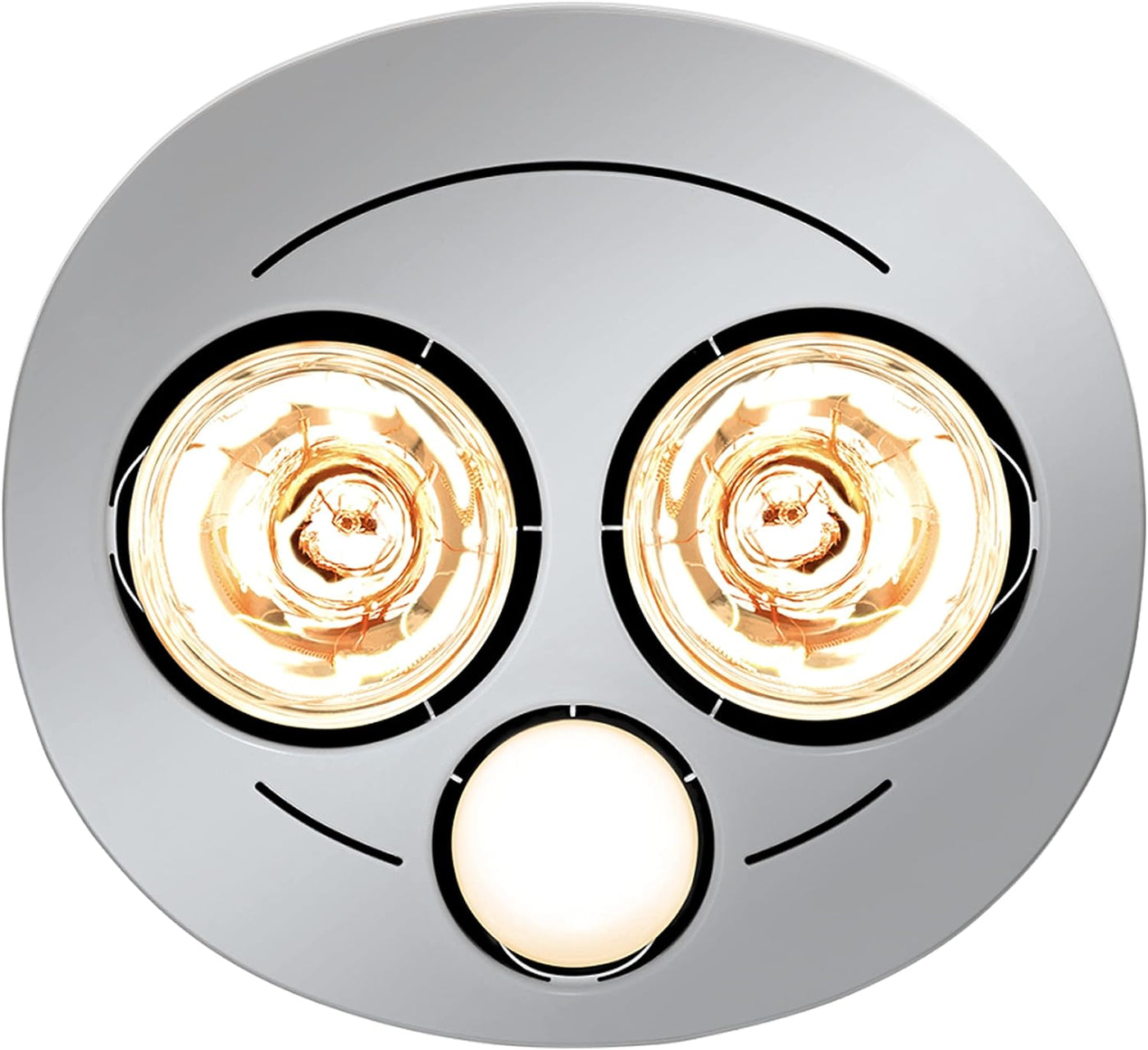 HPM 3-in-1 Heat Fan with LED Light Non-Ducted 2-Lamp has strong air extraction: 240m3/h (2 lamp). 7W/600 Lumens LED centre light, Heat Lamp - no warm-up time. Exhaust fan - whisks away steam and odours. Helps prevent build up of mould, mildew and fogging mirrors. Individual switch controls - control heat, fan and lamp from one Excel Life switch plate included. Stylish low-profile design.