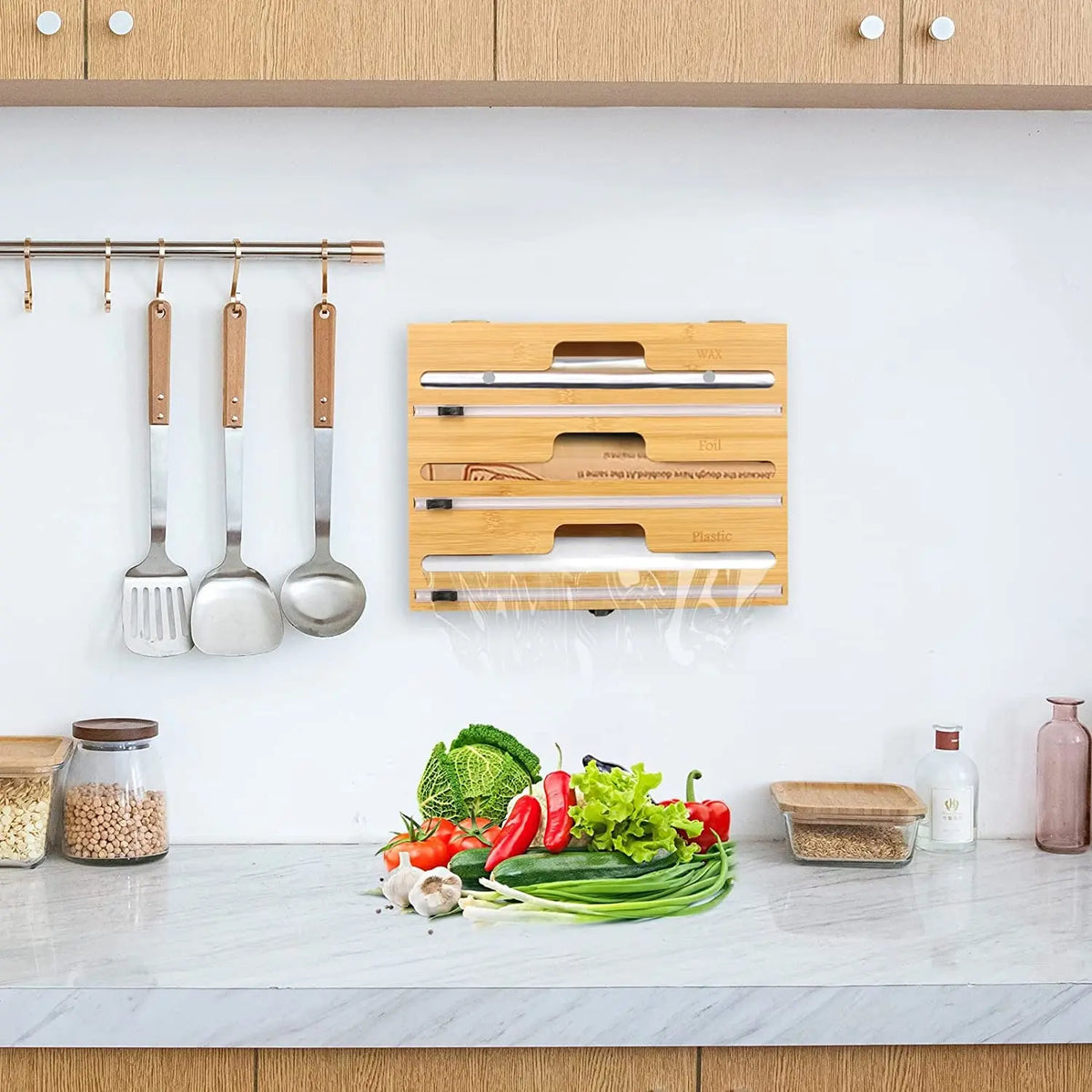 3 in 1 Plastic Wrap Dispenser with Slide Cutter,Aluminum Foil, Wax and Plastic Wrap Dispenser Organizer - 3 in 1 Wrap Dispensers