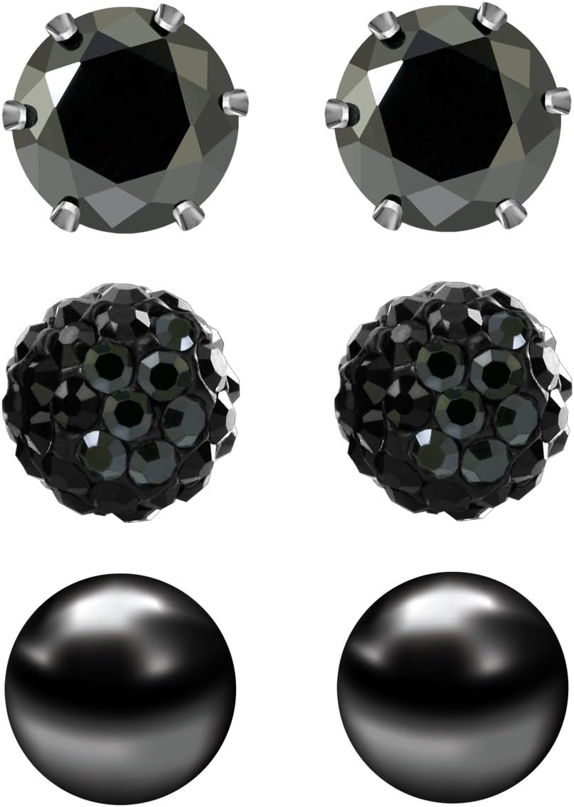 3 Pairs Stud Earrings Set for Women Girls Cubic Zirconia Rhinestones Faux Pearl, Birthstone, Hypoallergenic, Stainless Steel Earrings Pin - 7) July. - Black