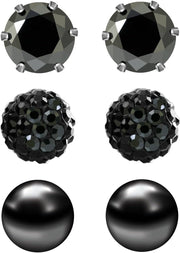 3 Pairs Stud Earrings Set for Women Girls Cubic Zirconia Rhinestones Faux Pearl, Birthstone, Hypoallergenic, Stainless Steel Earrings Pin
