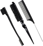 3 Pcs Slick Brush Set Bristle Hair Brush Teasing Comb Edge Hair Brush Grooming Combs Sturdy Rat Tail Comb for Women Babies Kids' Hair (Black) - Dark black