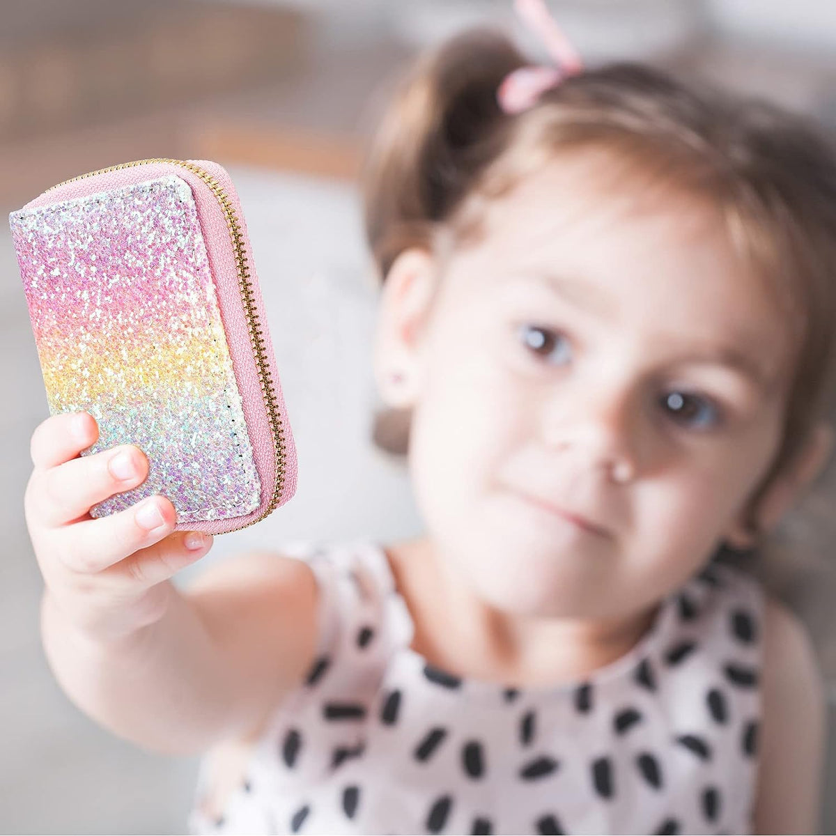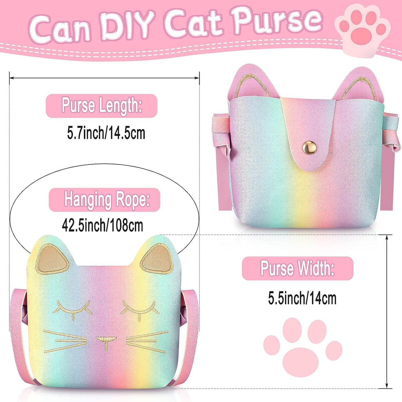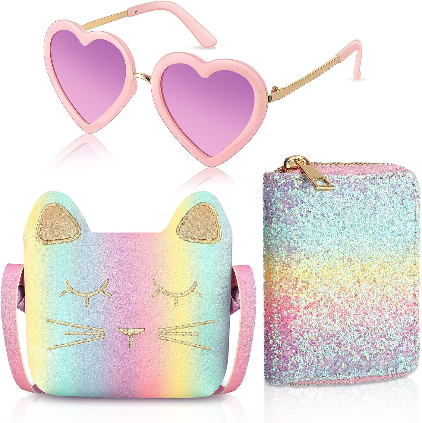 3 Pieces Toddler Pink Cute Cat Purse Heart Shaped Sunglasses with UV 400 Protection Crossbody Bag Glitter Small Wallet for Little Girl Birthday Party Gift, as Pictures
