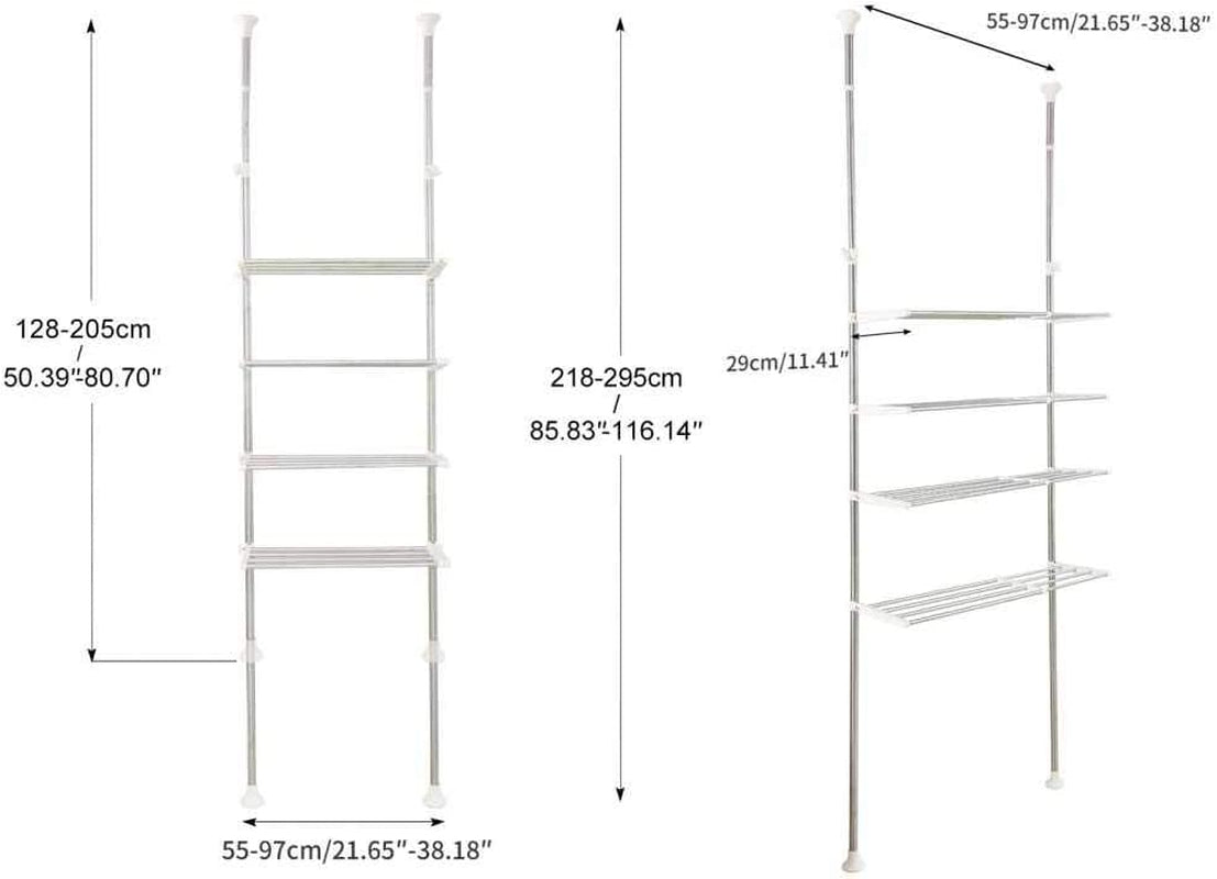 4-Layer Expandable Laundry Shelf over Toilet Washing Machine Storage Rack Bathroom Organizer Tension Pole Space Saver for Small Spaces, Ivory