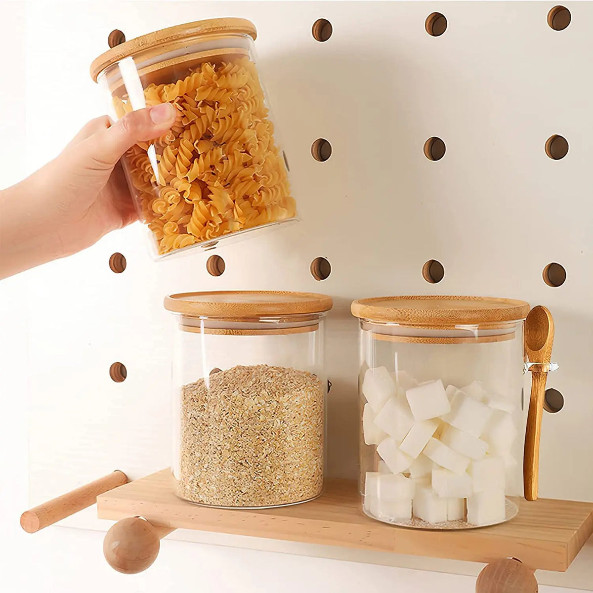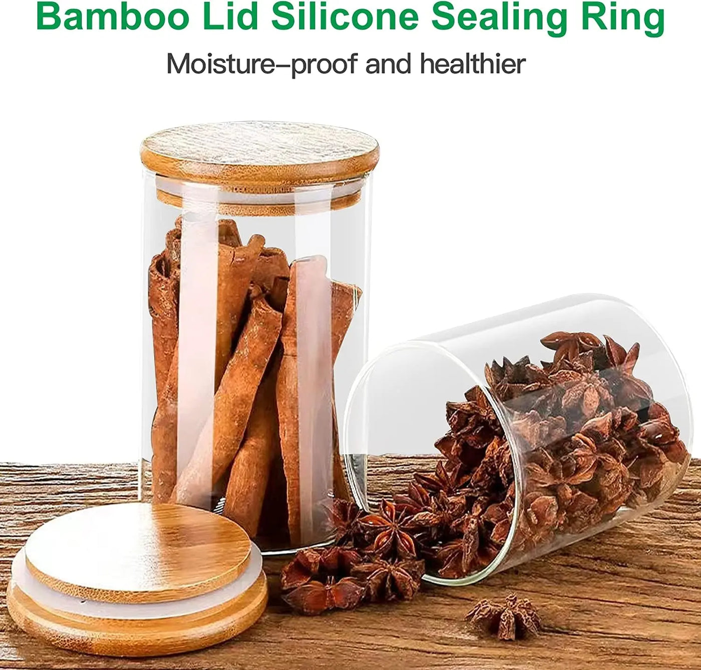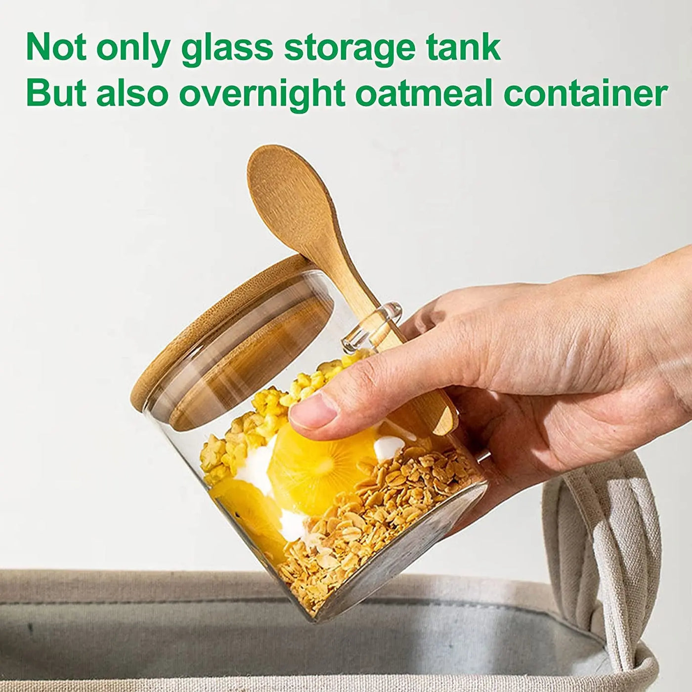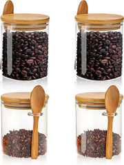 4 Pack Glass Jars with Bamboo Lid & Bamboo Spoons, 18 OZ Glass Food Storage Jars Borosilicate Glass Canisters for Coffee Bean, Sugar, Storage, Dry Goods, Cookie, Candy, Tea, Spices and More