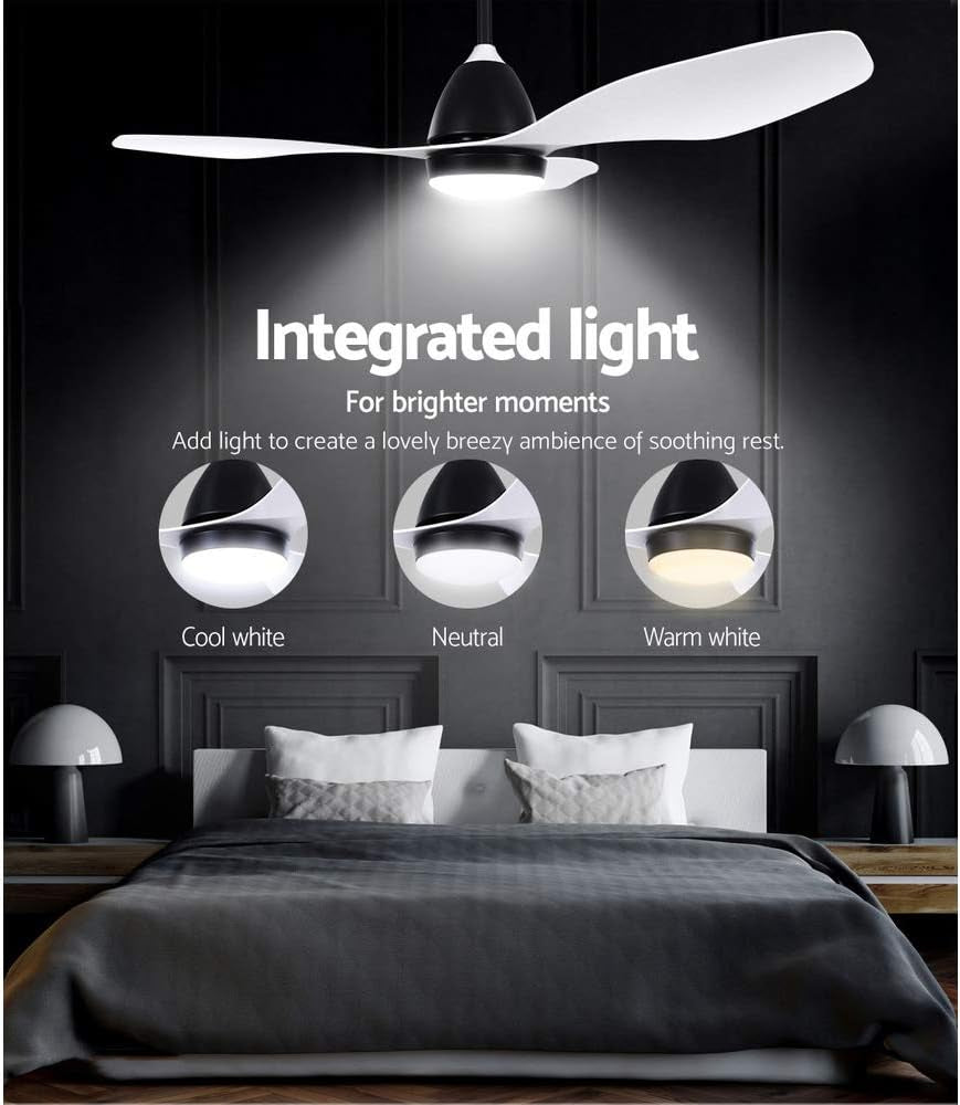 With five fan speeds, the contemporary-design ceiling fan features an efficient DC motor that provides ample air circulation and cool breezes throughout the room. Better still, the fan also comes with a reverse cycle mode that can be used for both summer and winter with its smart wind drafts. Plus, the built-in LED light provides ample lighting with three colour choices: warm white, neutral and cool white, to suit your ambient mood. Not least, its energy-efficient 35W motor operates ever so quietly and an 8-hr timer also allows you to preset the fan to start and stop at your desired timing. The ceiling fan also comes with all the accessories for an easy installation including a handy remote control for hassle-free use.