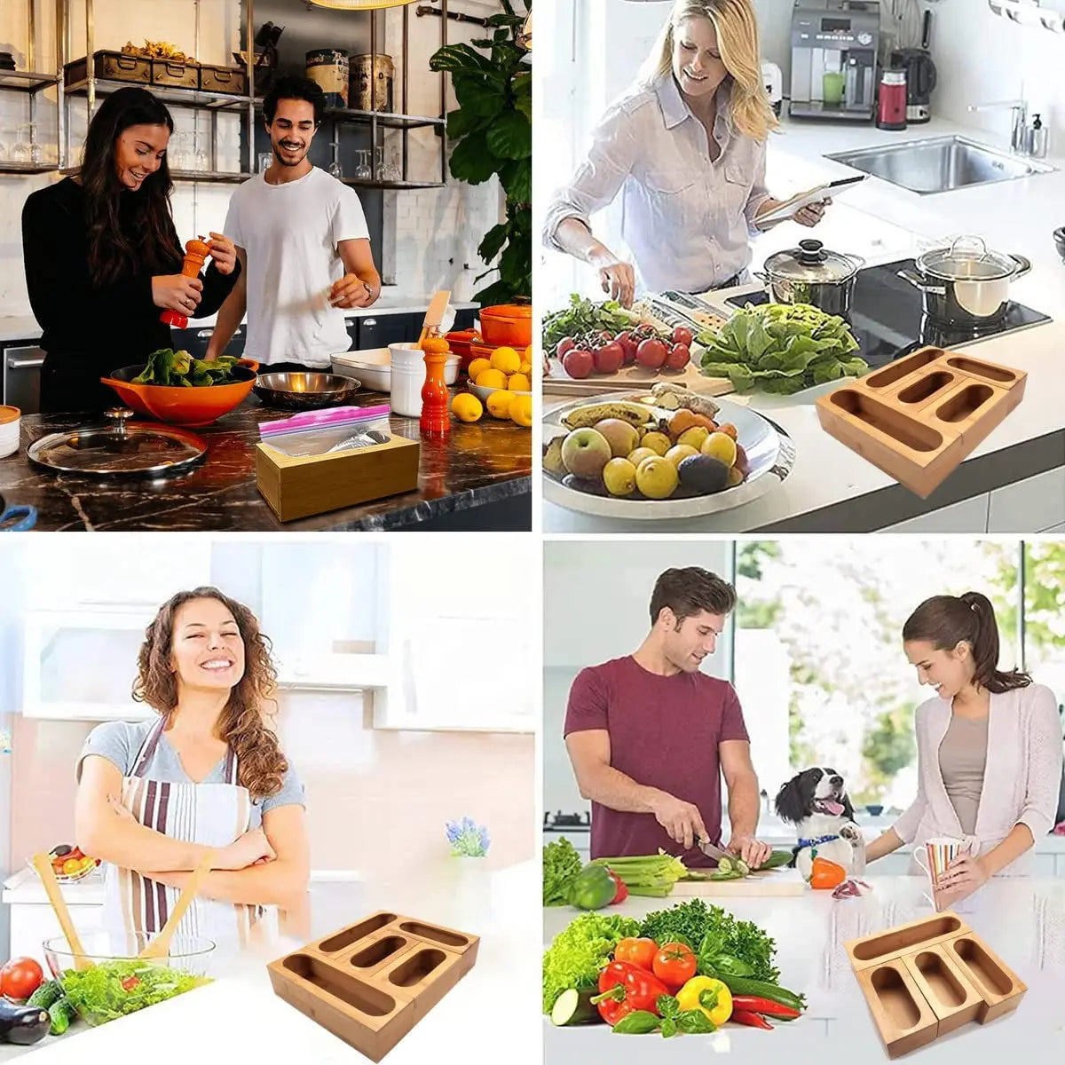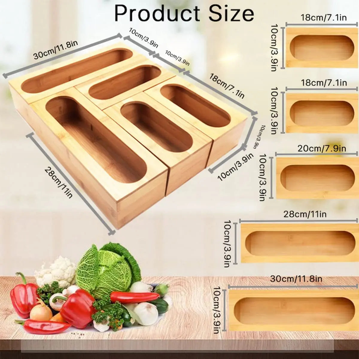 【Keep Drawer Organized】Each organizer box measures 3 inches in height. Make your drawer neat and organized with this bamboo box. It offers you different ways of organizing storage bags. You can put it in kitchen drawer or hang it on the wall. Sliding cover makes it easier to put the bags in.