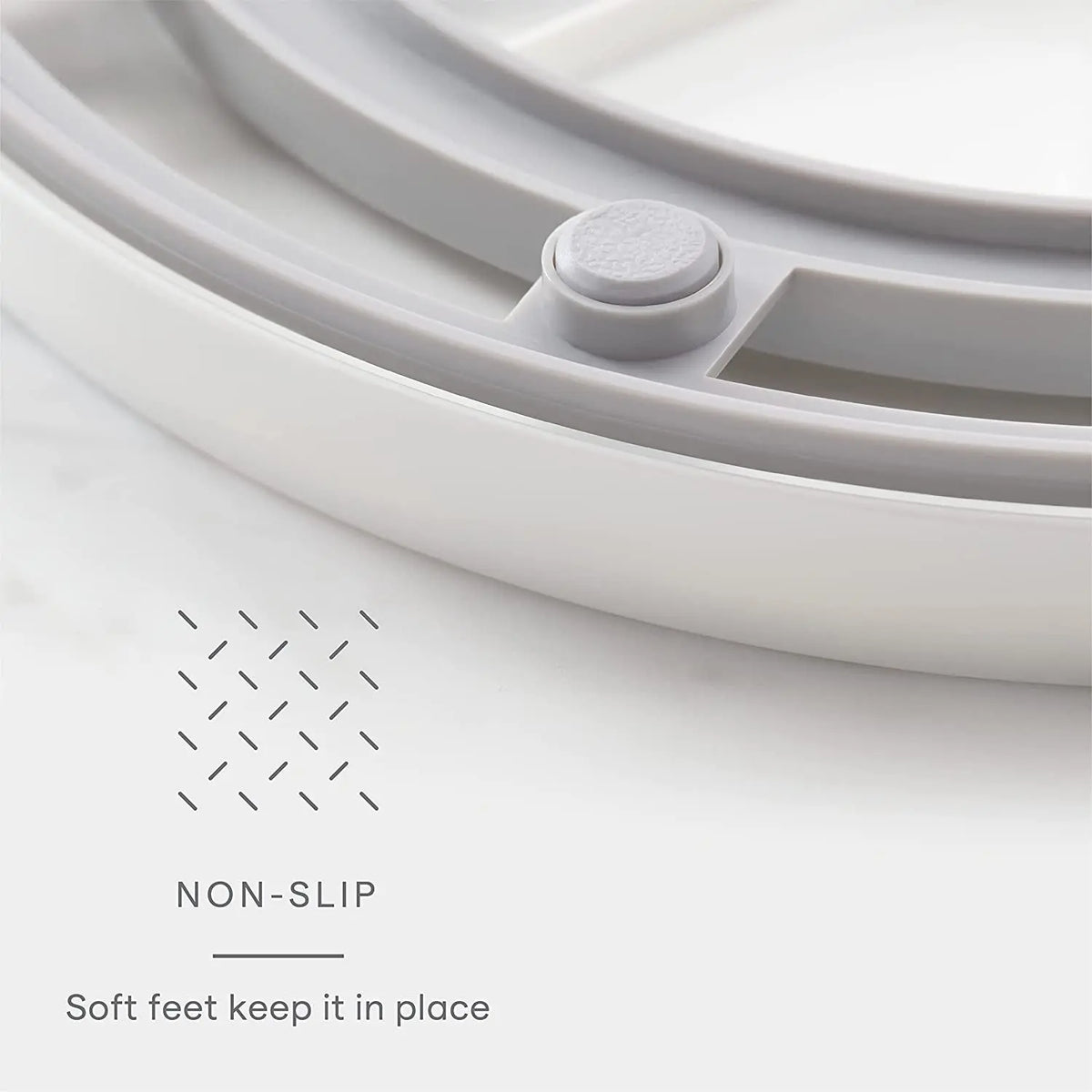 YouCopia's Two-Tier 11" Crazy Susan turntable helps you stop digging and start spinning (and winning)! find and reach everything on the shelf with two-tiers of storage for your cabinet, pantry, or bathroom. This hard-working lazy Susan features an adjustable center post that lets you choose a 5", 6" Or 7" Clearance height for the second tier. Perfectly fit your items and maximize vertical space. Stainless steel ball bearings provide smooth 360 degree rotation. Made of durable, BPA-free plastic with soft, non-slip feet to keep it all in place. No installation or mounting required. Simple, two-step, twist-and-lock assembly. Measures 10. 5" D x 10. 5" W x 6. 9-8. 9" H (26, 7 x 26, 7 x 17, 5 - 22, 6 centimeters). YouCopia is that feeling of triumph over small stuff. No one likes the hassle of a messy home, so our products keep items organized just the way you want. Go ahead, "woo Hoo" When everything is right where it should be.