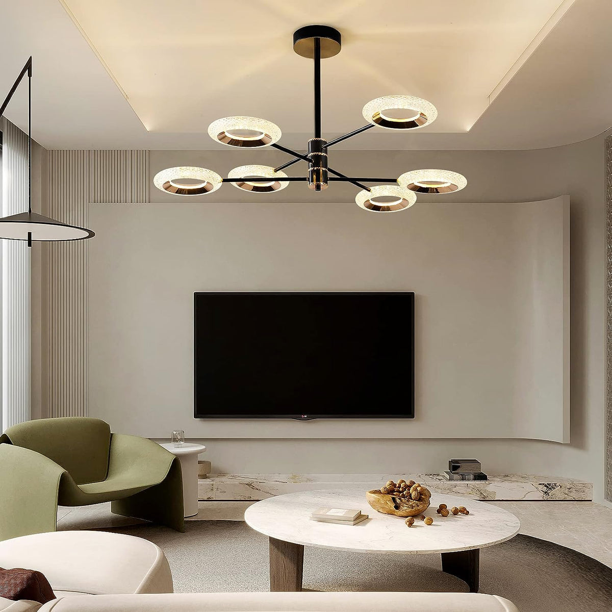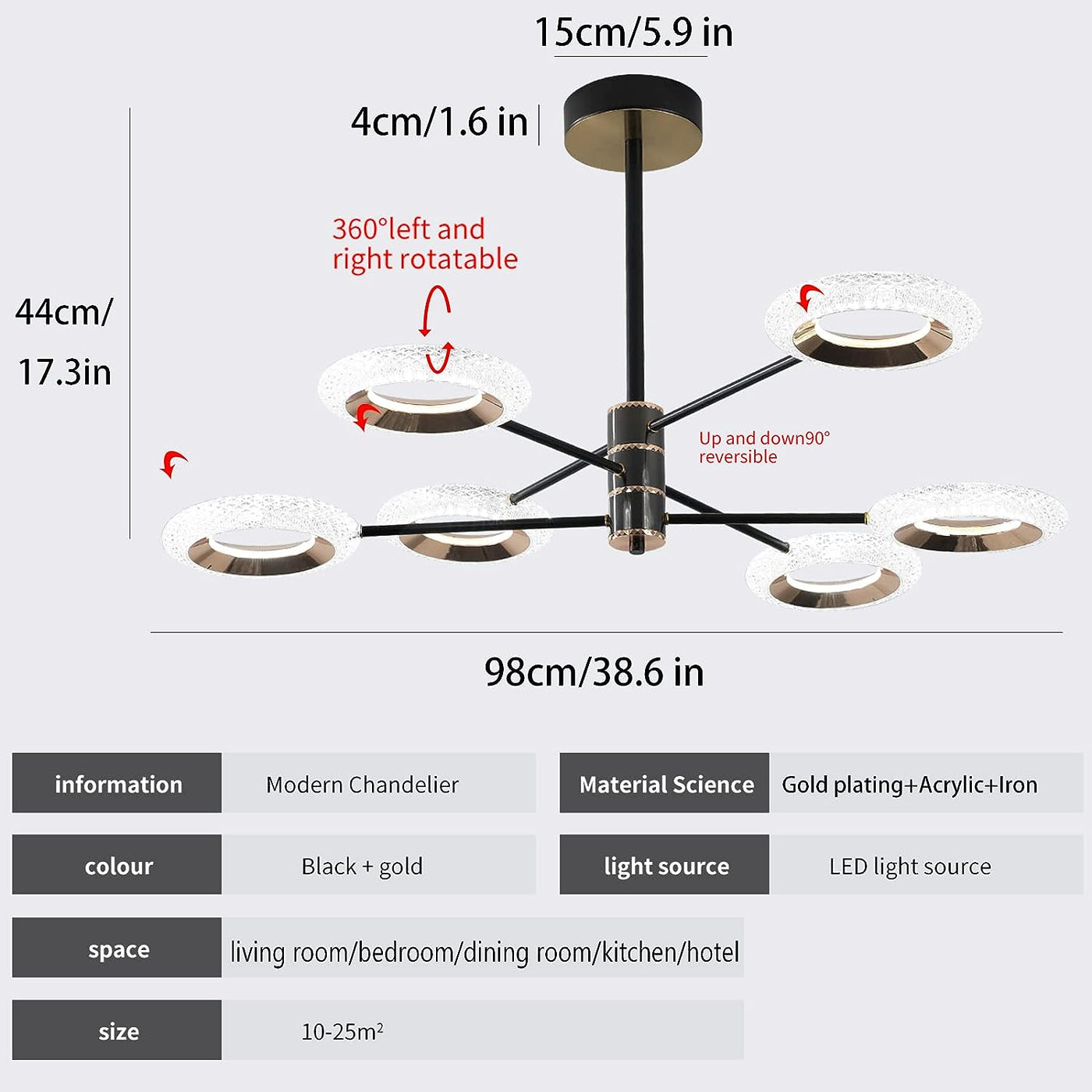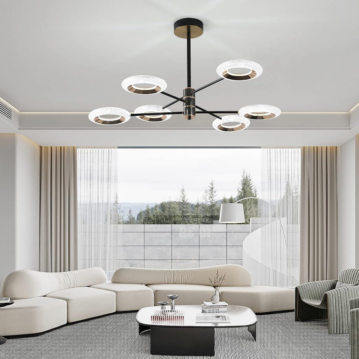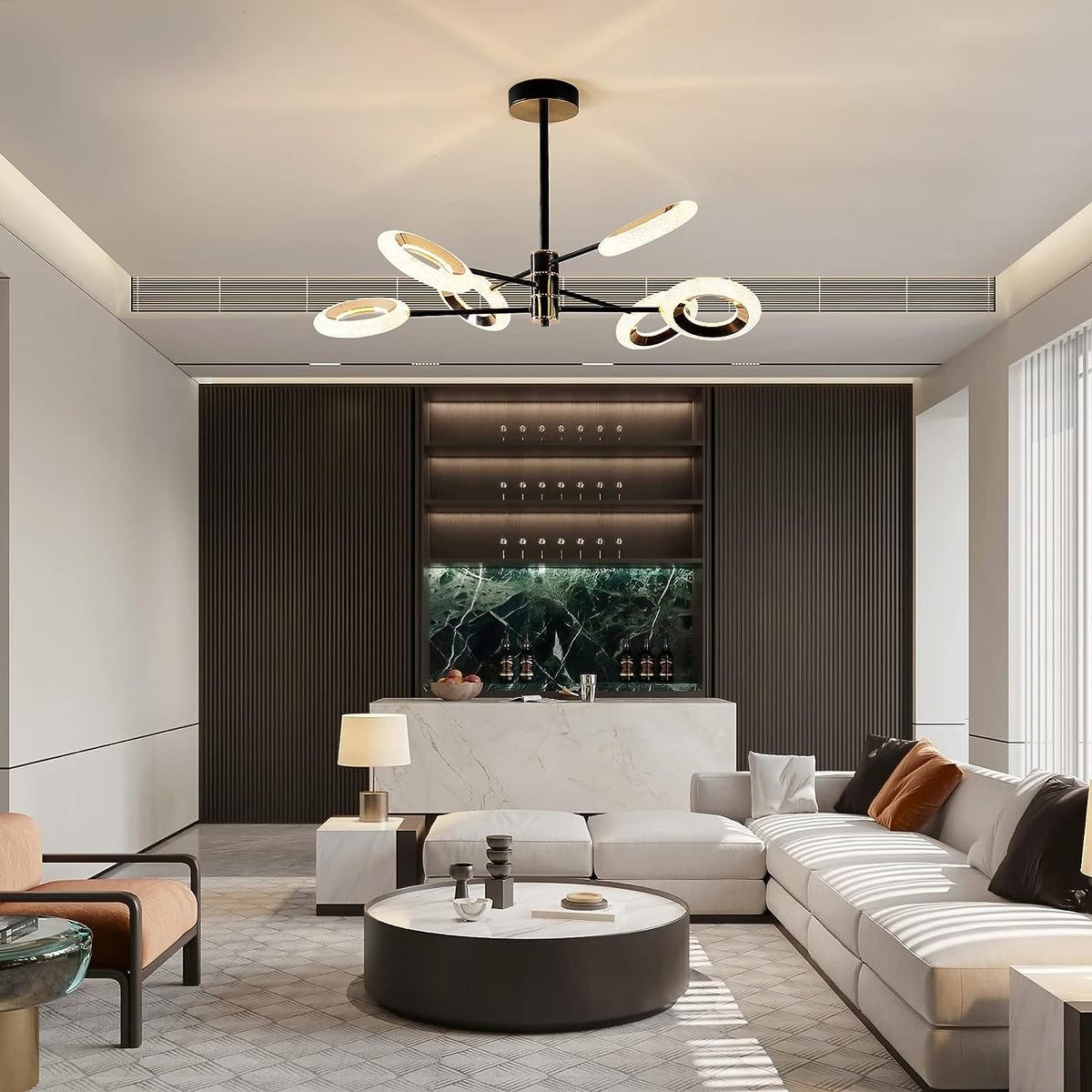 6 Lights Sputnik Chandelier Dimmable LED Chandeliers Modern Semi Flush Mount Ceiling Lights Fixture Adjustable Sputnik Pendant Light for Bedroom Living Room Kitchen Dining Room - Black Dimmable