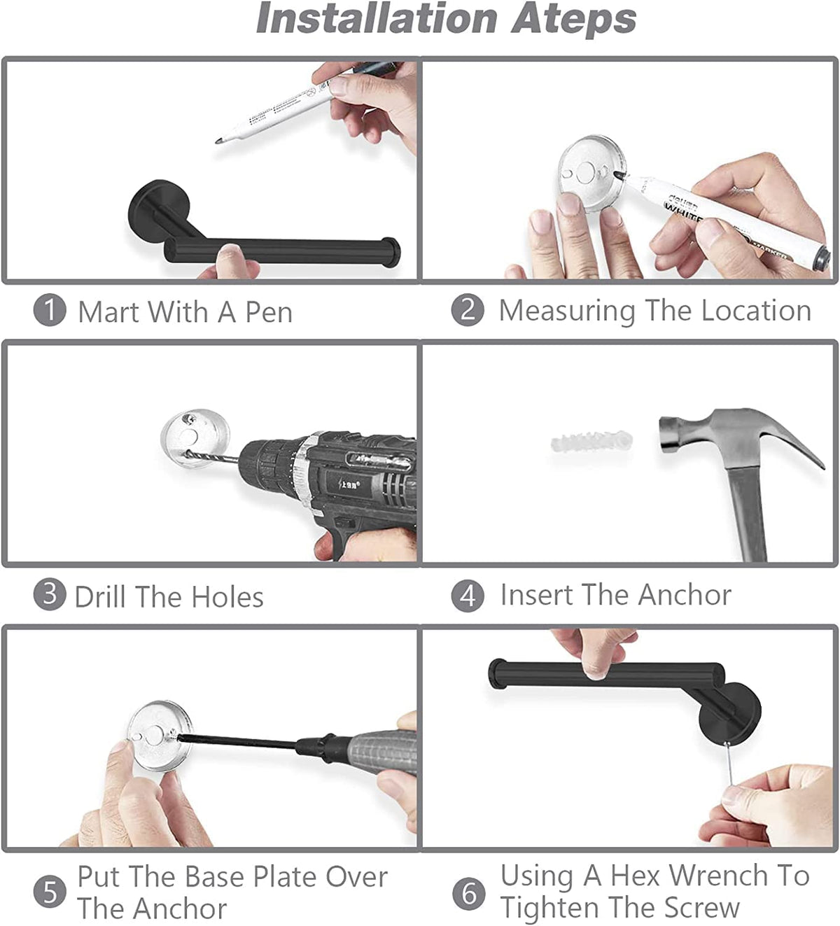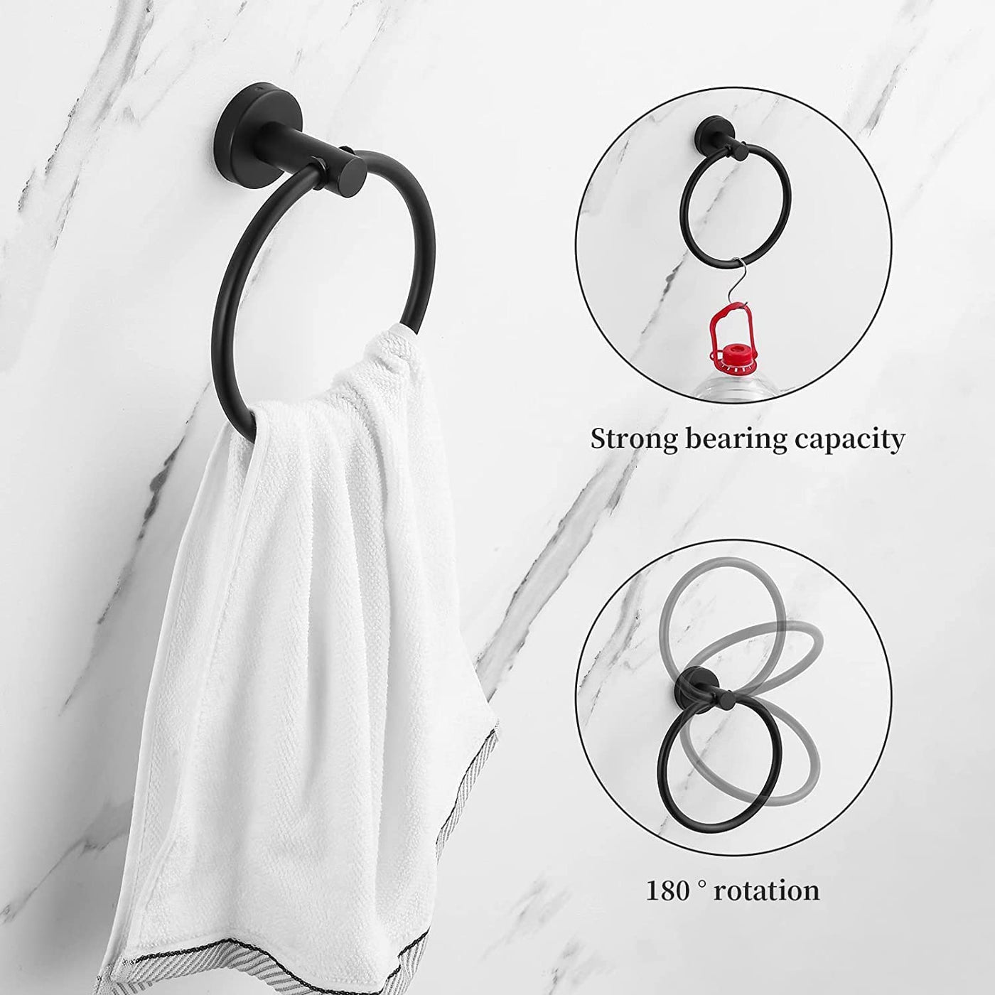 [6 Pack] Bathroom Hardware Set, Heavy Duty SUS 304 Stainless Steel Bath Accessories Set Wall Mount Towel Bar Set, Includes 16/24" Towel Bar,Toilet Paper Holder,Towel Ring, 2 Hooks - Black