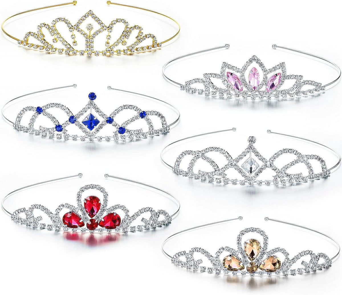 6 Pieces Girls Crown Tiara Rhinestone Crown Colorful Crystal Tiara Rhinestone Princess Crystal Headband Crown Headband for Little Girls Wedding Princess Birthday Crown Party