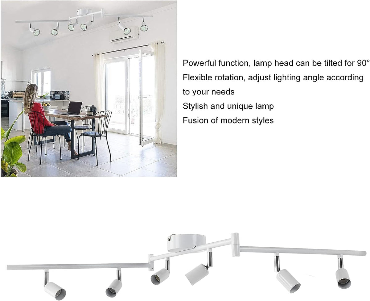 6 Way Ceiling Spotlight GU10 Base Socket, Track Lighting Kit Rotatable Lamp Head, Can Be Tilted 90°, Adjustable Lighting Angle, for Showrooms, Exhibition Halls, Museums, Cafes, Restaurants(White) - White