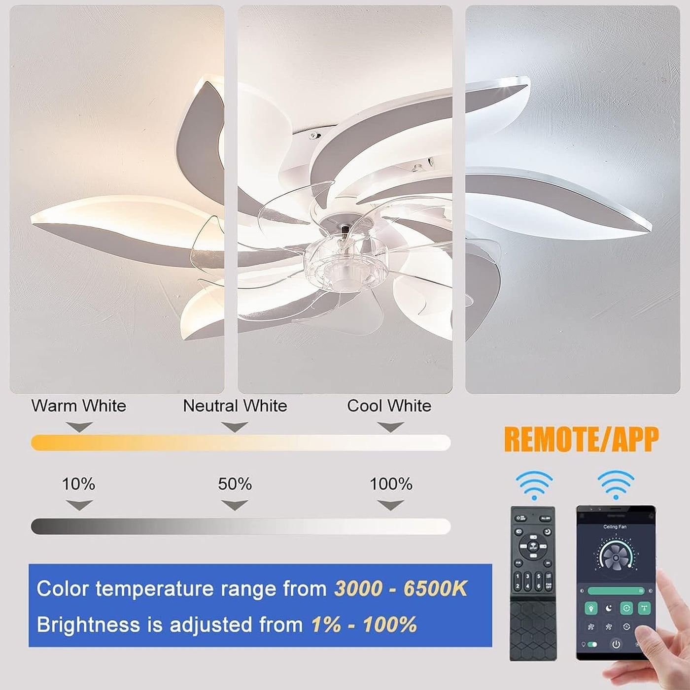 68Cm Low Profile Ceiling Fans with Lights and Remote/App Control,3 Light Color Changes,6 Wind Speed Modes,Flush Mount Ceiling Fan Light,Modern Ceiling Light with Fan for Bedroom/Study/Office…