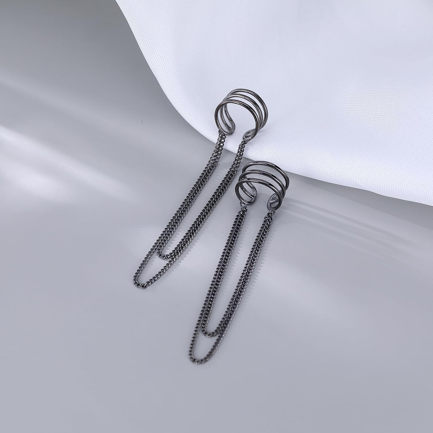 925 Sterling Silver No Piercing Cuff Earrings Chain for Women Teen Girls Wrap Earrings Tassel Clip on Ear - Black Gold Plated