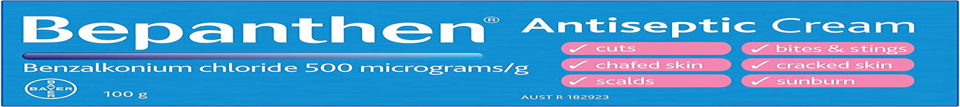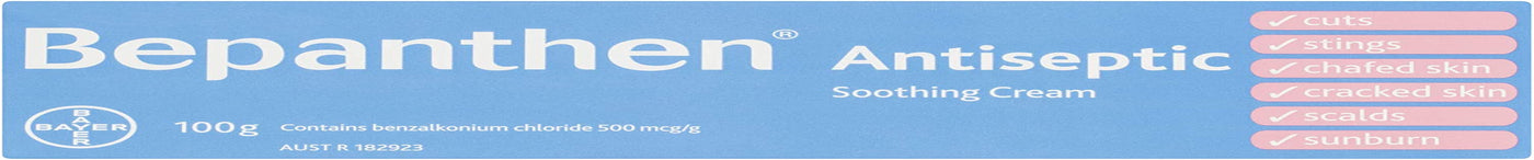 Antiseptic Soothing Cream for Cuts, Bites & Stings, Chafed Skin, Cracked Skin, Scalds and Sunburn, 100 G - Bepanthen / 100 g (Pack of 1)