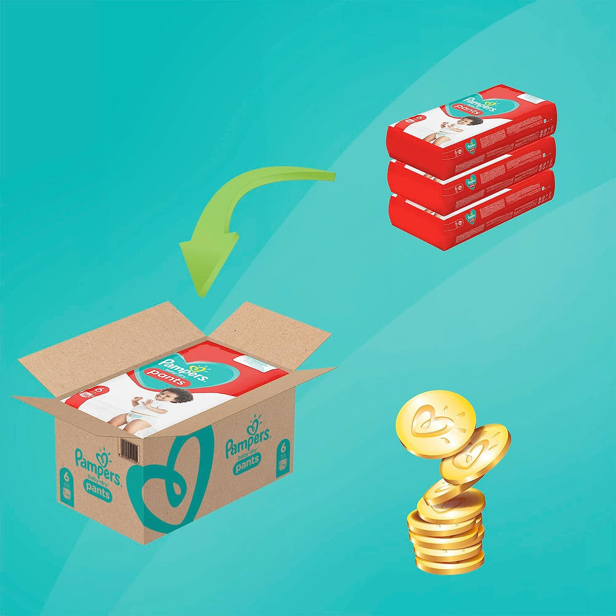 Pampers Baby-Dry Nappy Pants Size 6 Junior (15+kg), 116 Nappy Pants, Easy On For Up To 12 Hours Of Breathable Dryness, Monthly Pack. World's No.1 Selling Diaper Brand. When baby becomes active and tries to roll or crawl away during changing time, taped nappies can be hard to put on, or can become loose. Then it’s time for Pampers Baby-Dry Nappy Pants! Pampers Baby-Dry Nappy Pants are easy to pull on and take off with tear away sides. Their all round fit adapts to baby’s movements to provide comfort and fit. Air channels let air flow freely inside the nappy pant for up to 12 hours of breathable dryness. Make changing time quick and easy with Pampers Baby-Dry Nappy Pants, wherever baby is crawling!
