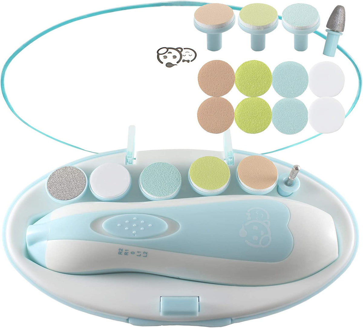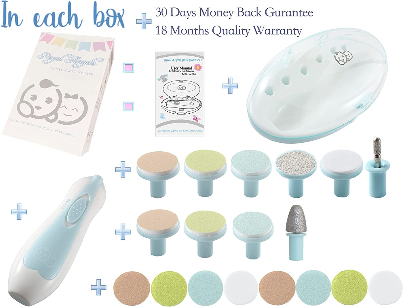 Baby Nail Clippers 20 in 1 by | Safe Electric Baby Nail Trimmer, Baby Nail File Kit, Additional Replacement Heads, Newborn Toddler Toes and Fingernails, Trim and Polish (Blue) - Blue