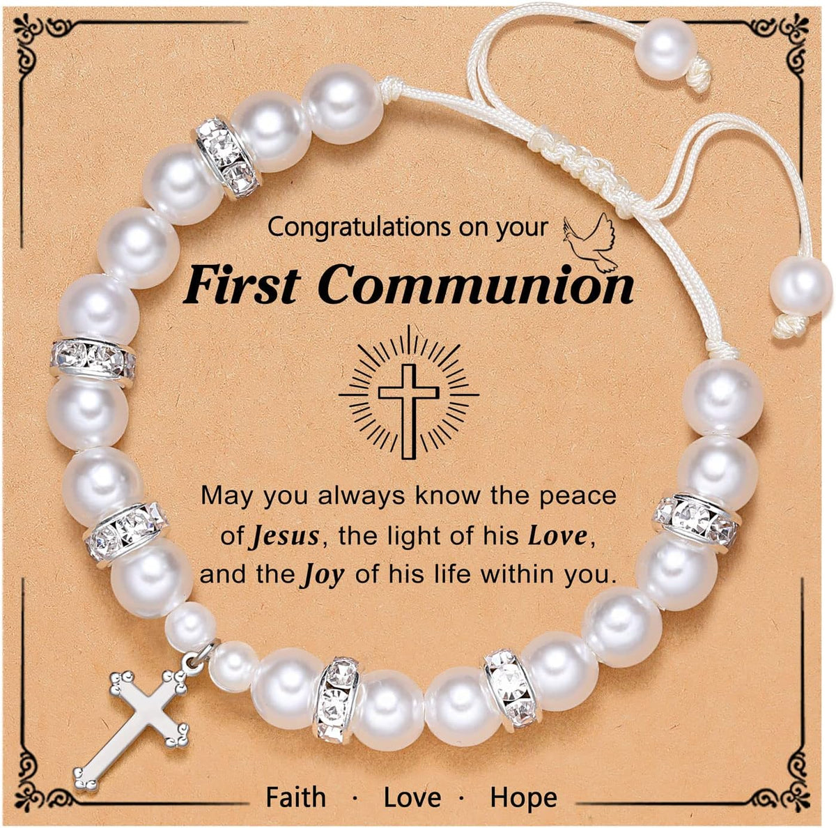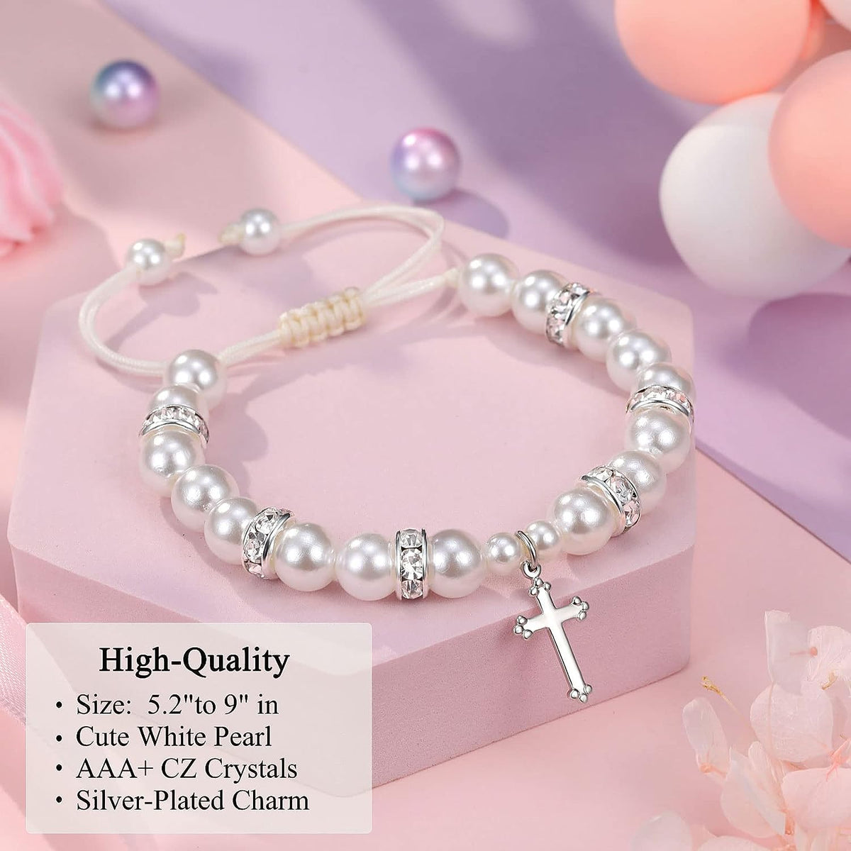 Baptism Gifts for Girl, First Communion Gifts Bracelets for Girls, Cross Bracelet - First Communion / Cz - White